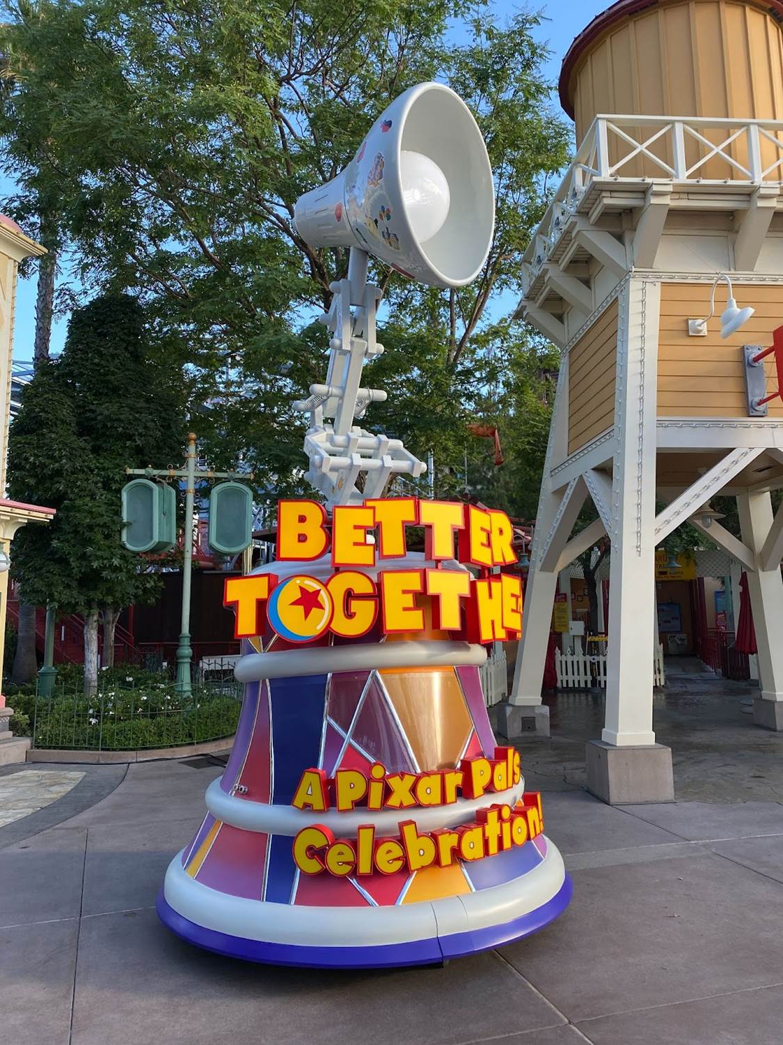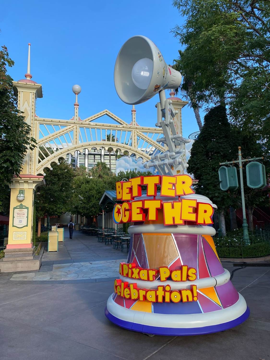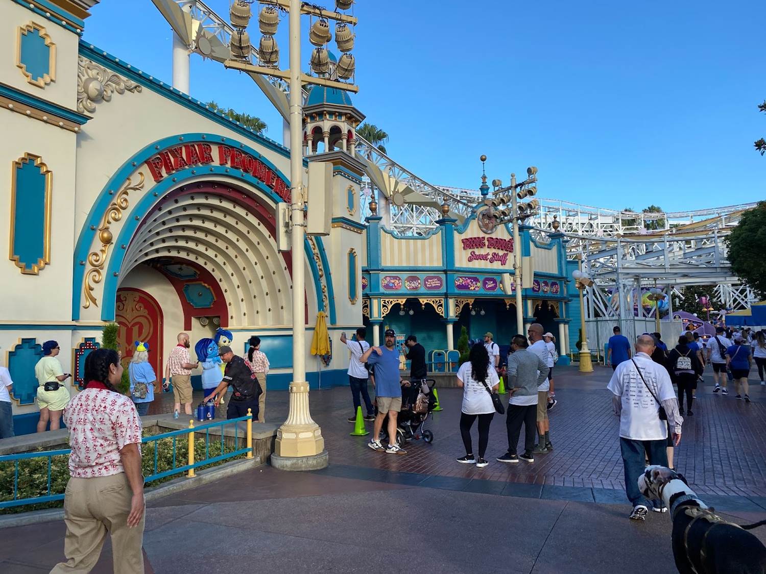 As we made our way around Pixar Pier, we passed by the Trash Can Trio entertaining walkers, Bo Peep from the Toy Story films, Sadness and Joy from Inside Out, a Magic Key photo op at the Silly Symphony Swings, the Luxo Jr. float from the “Better Together: A Pixar Pals Celebration" parade, and a fun DJ.