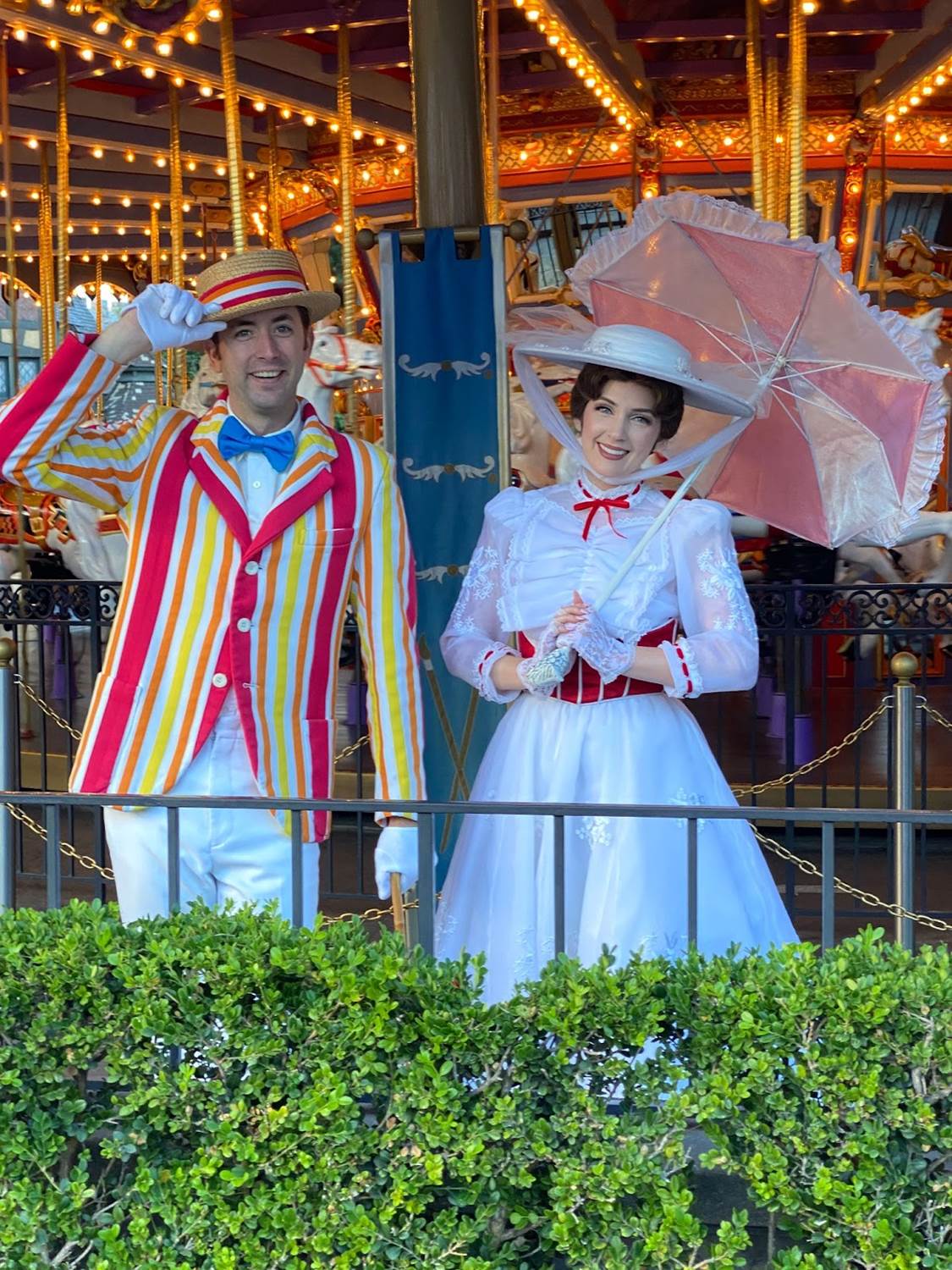In Fantasyland we encountered Mary Poppins and Bert at the King Arthur Carrousel, and then the Mad Hatter by the Mad Tea Party attraction.