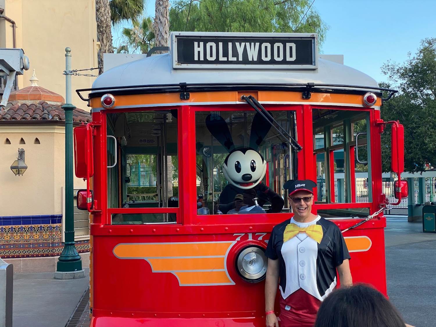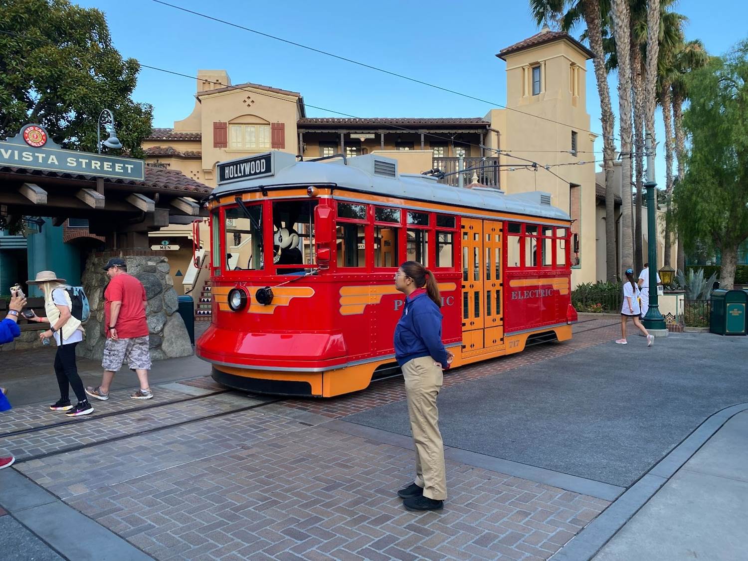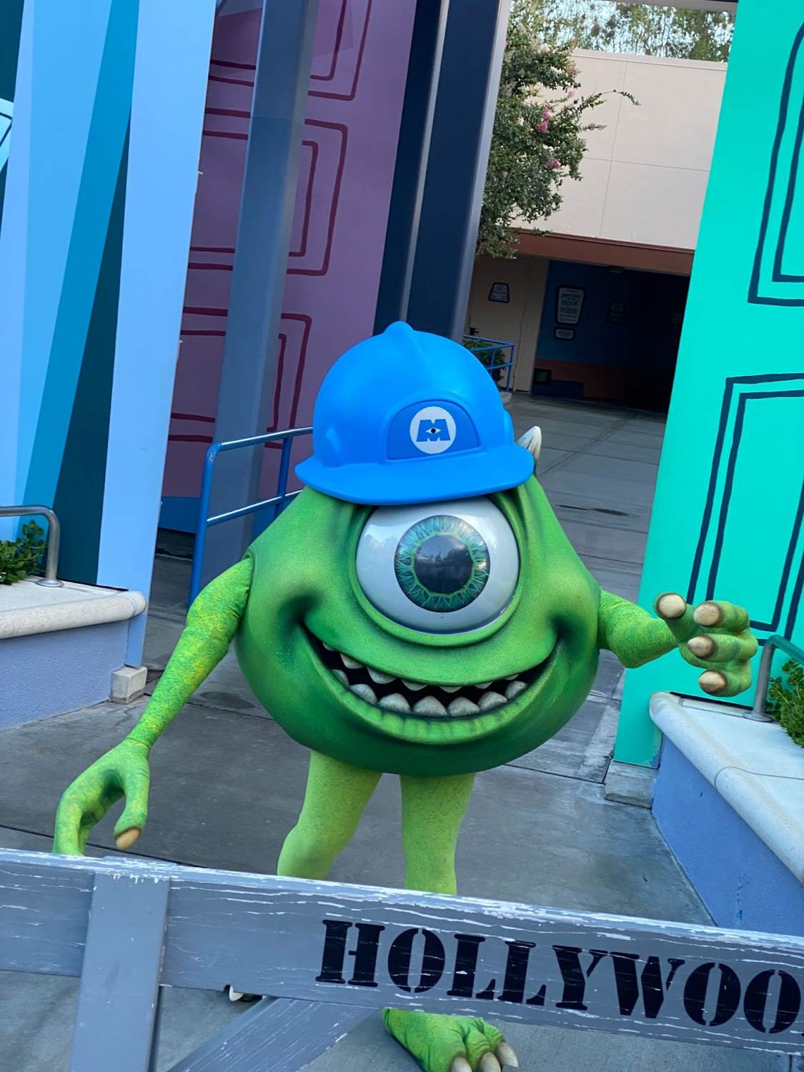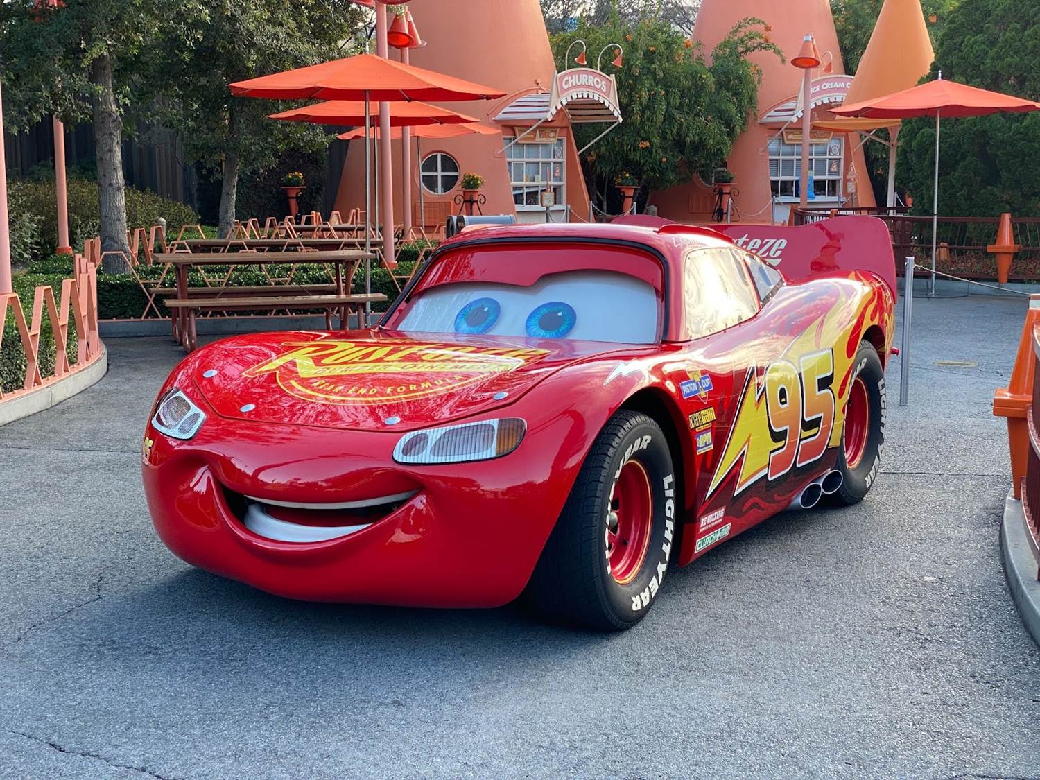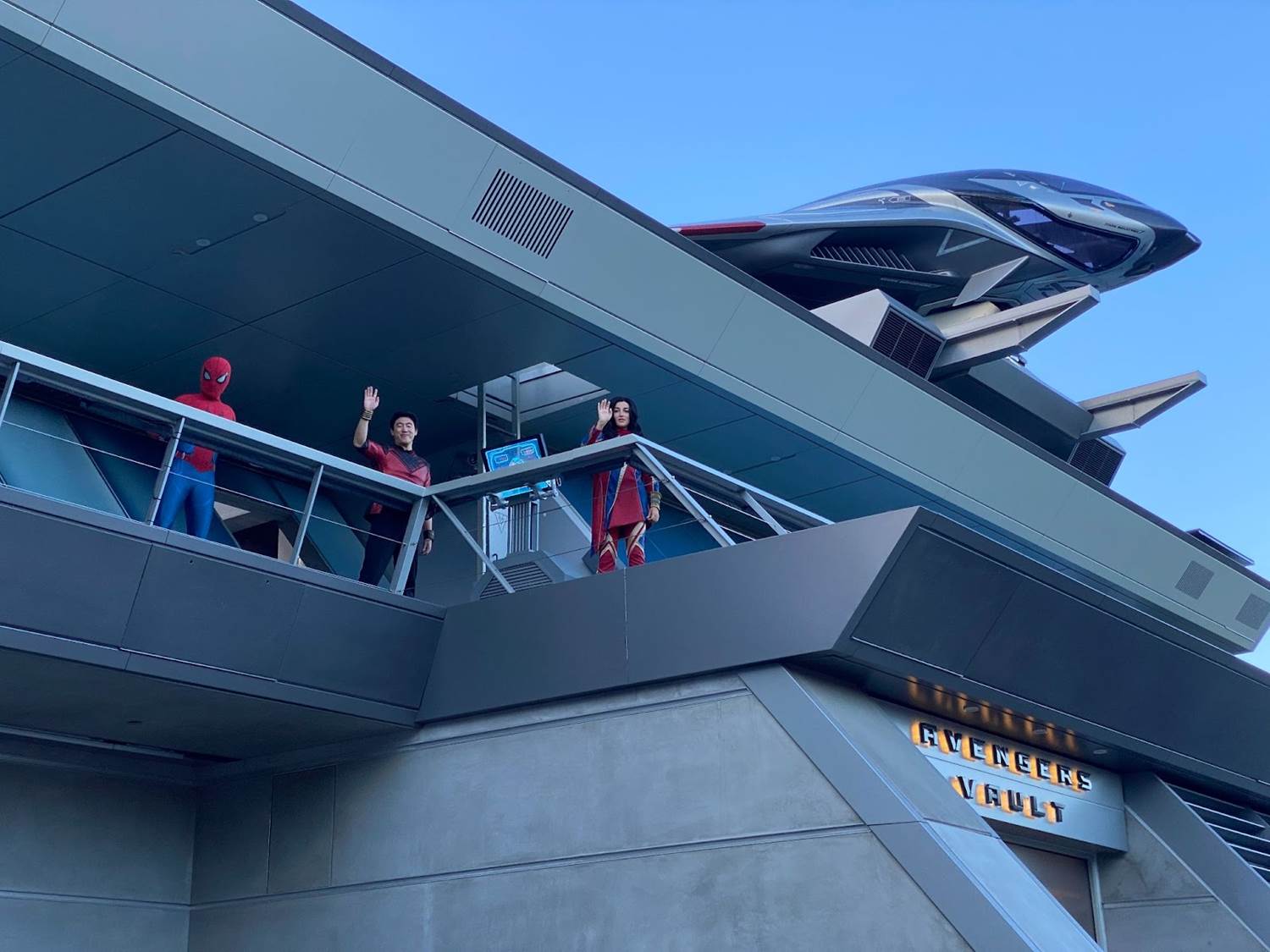 Then it was time to cross the Disneyland Resort esplanade into Disney California Adventure, where Oswald the Lucky Rabbit was stationed in a Red Car Trolley. Other characters included Mike Wazowski in front of the Monsters Inc. attraction, Spider-Man, Shang-Chi, and Ms. Marvel in Avengers Campus, and Lightning McQueen and Tow Mater in Cars Land.