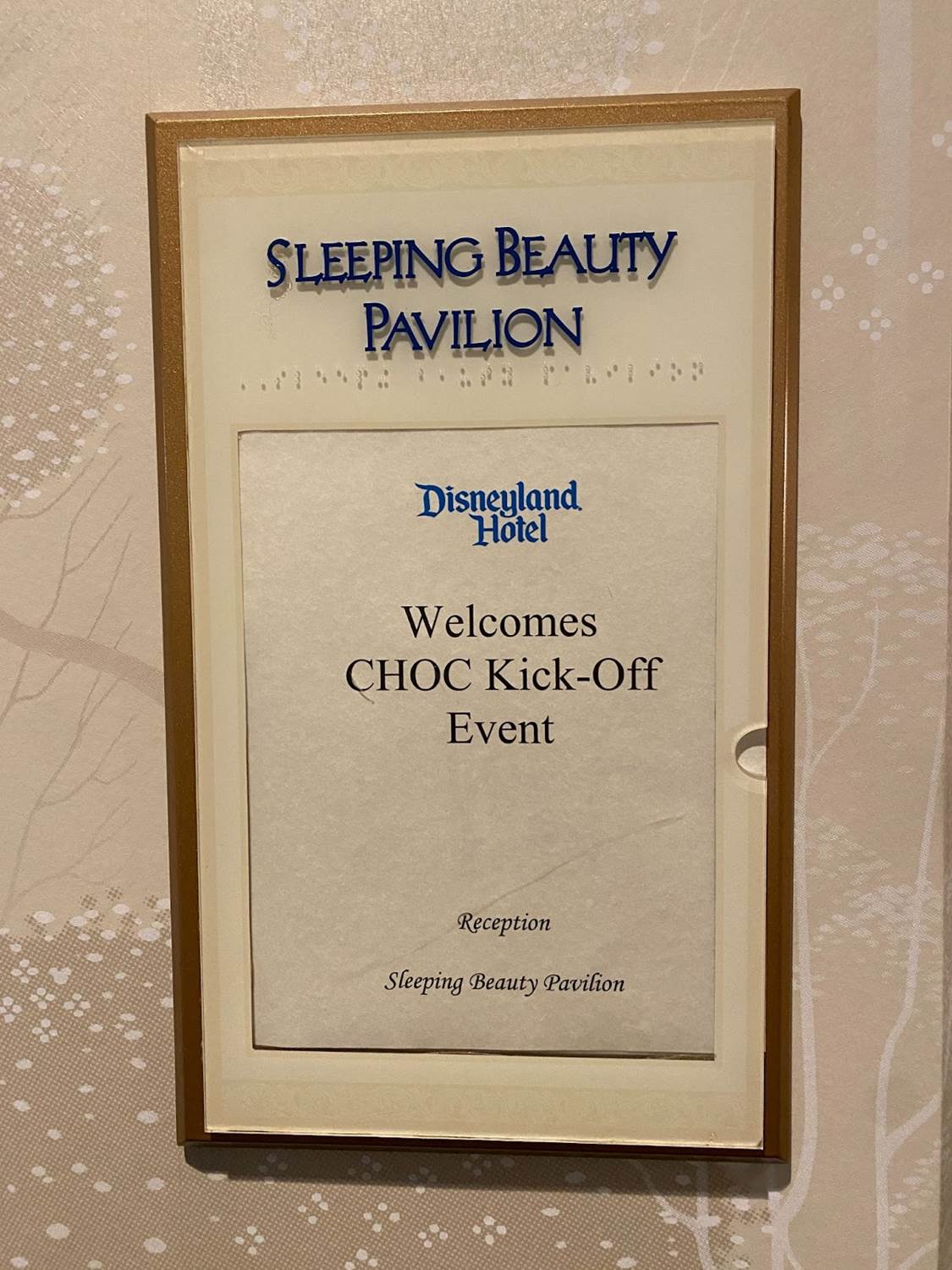 Rewinding time a bit, when I first arrived at the Disneyland Hotel that evening for the CHOC Walk kickoff event, I found signs around the hotel lobby and convention center area pointing me in the right direction toward the venue’s Sleeping Beauty Pavilion.