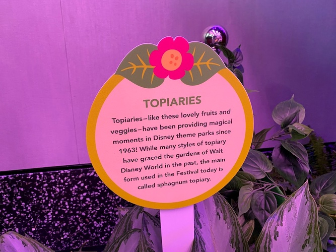 - A newly opened gallery exhibit at the festival showcases the artistry and techniques behind the creation of EPCOT's famous topiaries and gardens.