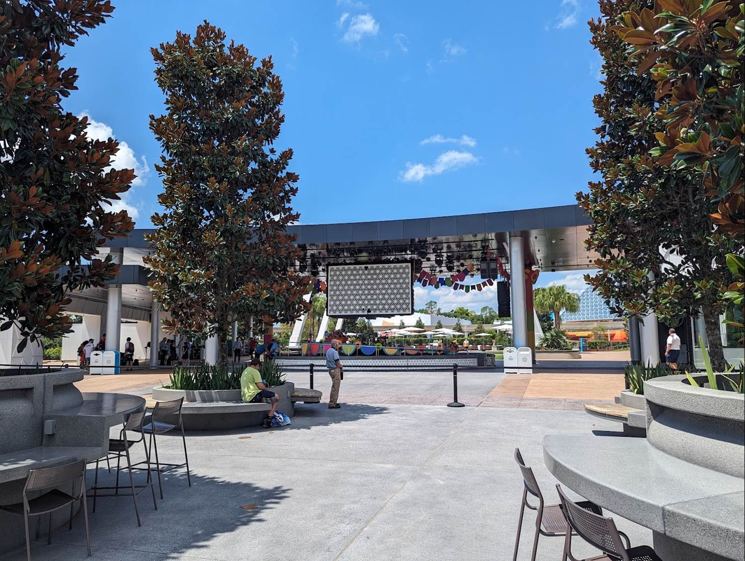 The covered Communicore Plaza stage will also debut with ¡Celebración Encanto!, a singalong show featuring Mirabel and Bruno. Be sure to enjoy the Madrigal Family and their songs before the show ends on September 6th.