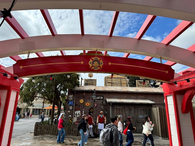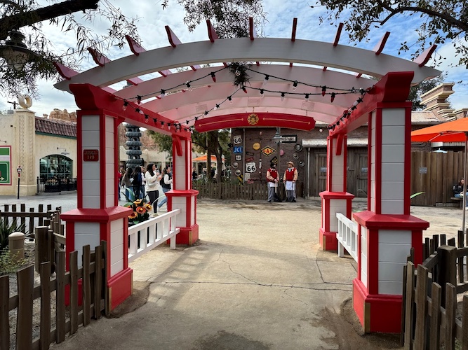 Adjacent to the Cozy Cone Motel and just across the street from Luigi’s Rollickin’ Roadsters, the new area features a rugged, off-road look with concrete work made to look like a dirt path.