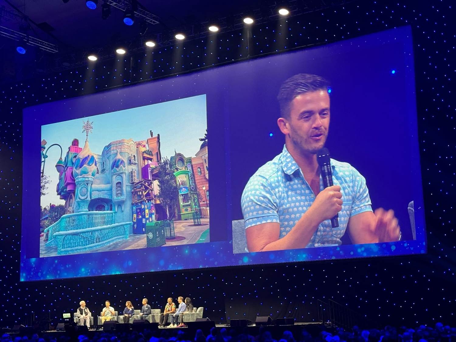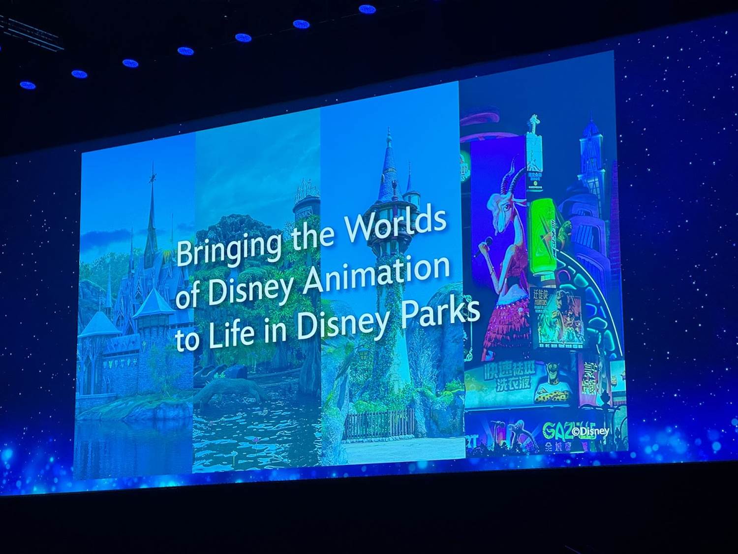 The presentation began with Roger Gould talking about the legacy of Walt Disney Imagineering, and then den Dulk going over World of Frozen at Hong Kong Disneyland.
