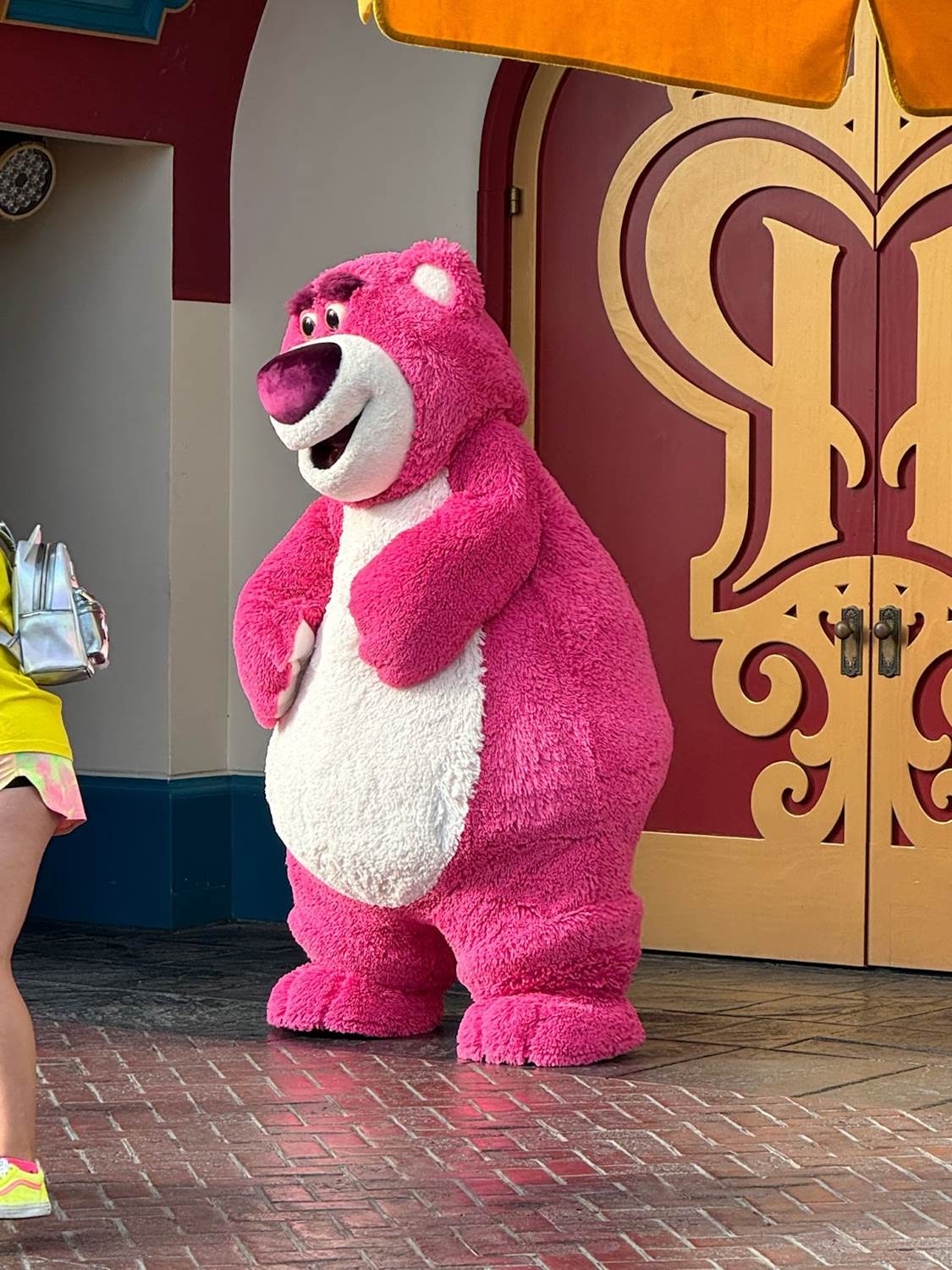 Pixar Pier welcomed Lotso for meet and greets…but don’t trust that smile.