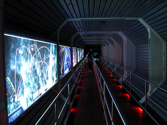 The lightning of the portal opened by the Cosmic Generator in the attraction is truly a sight to behold. How many lights do you think are in that launch tunnel? Well, probably not as many as you’d think. The effect is enhanced with numerous well placed mirror shards that will reflect and accentuate the flashing and strobing lights. You’ll never notice because you’re moving too fast.