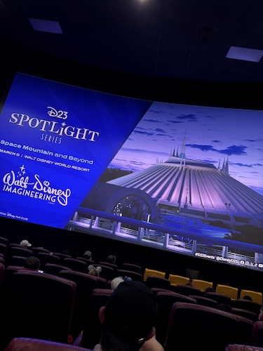 Enter events like the Spotlight Series, which gives those in attendance (who’ve paid for the privilege) a closer and more in-depth look at something, like a park attraction, anniversary-celebrating film or what have you. In today’s case, it was a Spotlight Series celebrating the 50th anniversary of Space Mountain at Walt Disney World that saw a full house of D23 Gold Members descend upon the AMC 24 at Disney Springs for a closer look at the history of this landmark attraction on its milestone anniversary.