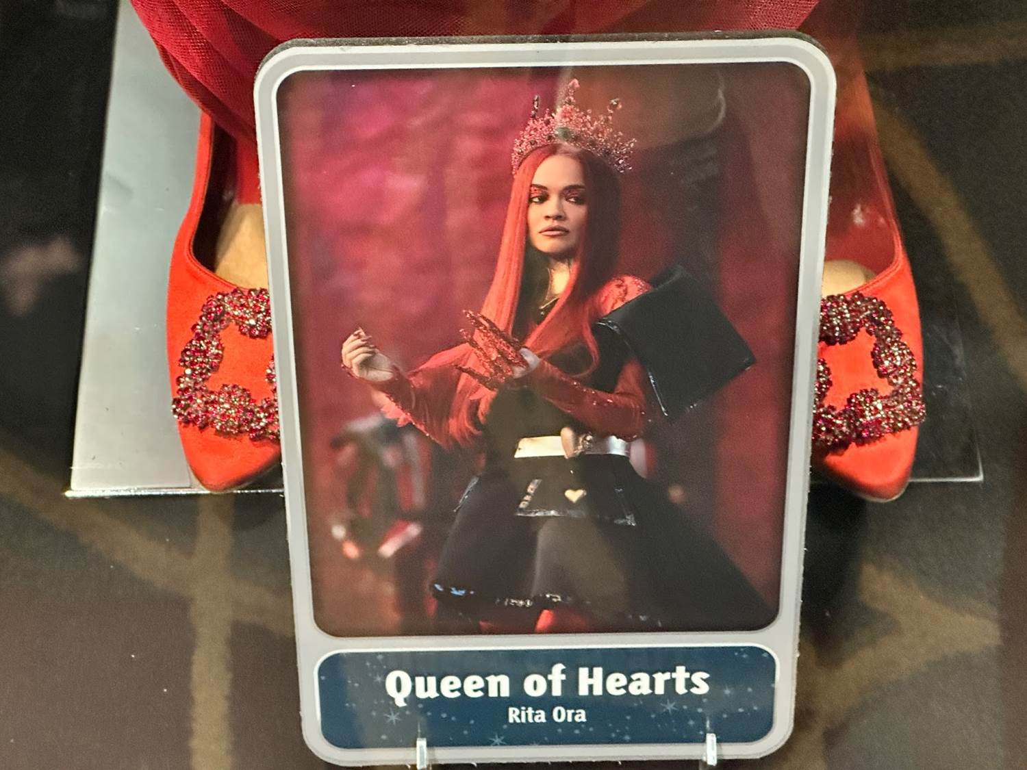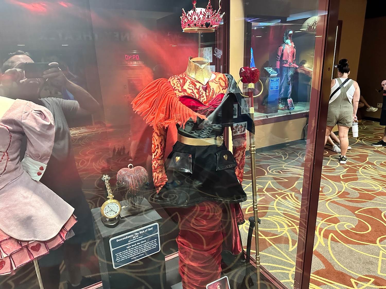 Costumes on display include those of Red (Kylie Cantrall), Chloe (Malia Baker), Bridget (Ruby Rose Turner) and the Queen of Hearts (Rita Ora).