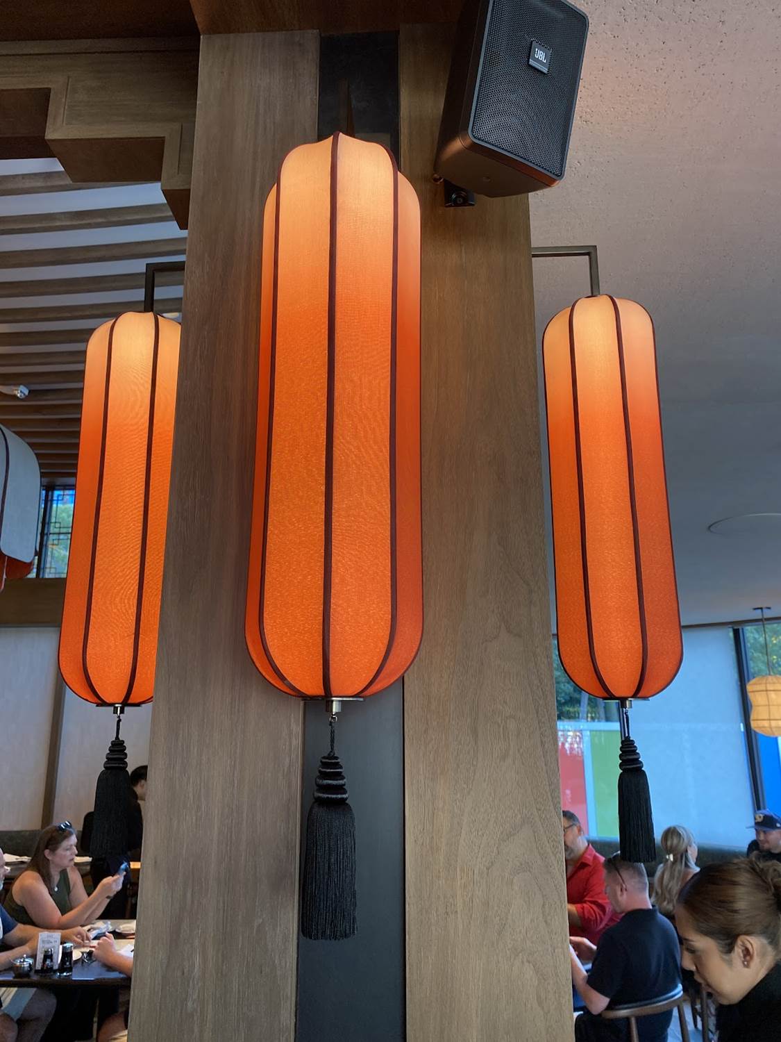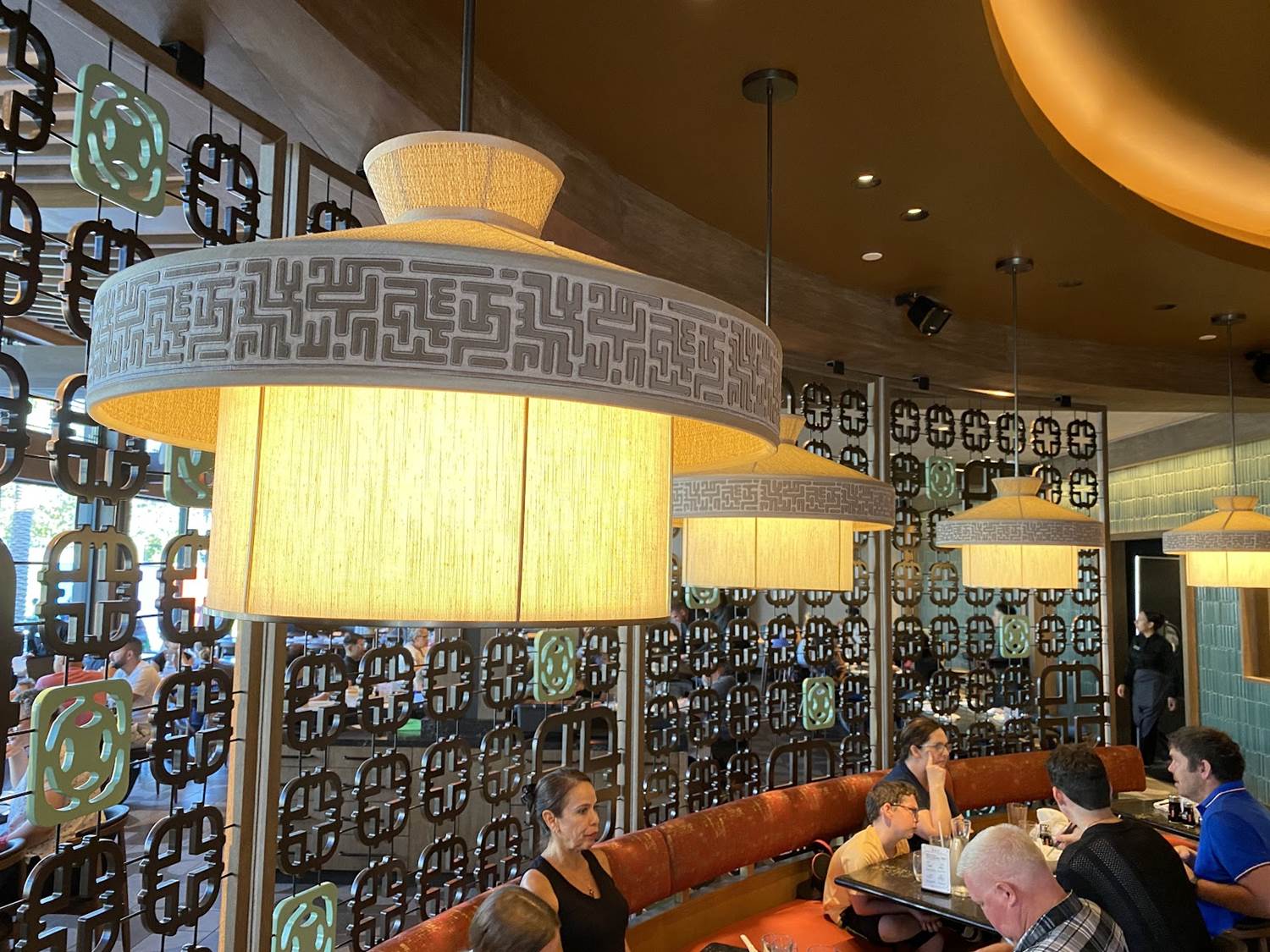 The new restaurant’s exterior is a dramatic, contemporary take on a traditional Chinese pavilion rooftop structure. A suspended, beaded installation over the circular central bar greets guests upon entering the restaurant, with traditional style Chinese pendants softly illuminating the space. An expo kitchen will serve as a backdrop, inviting guests to witness the artistry behind the dumpling-making process firsthand.