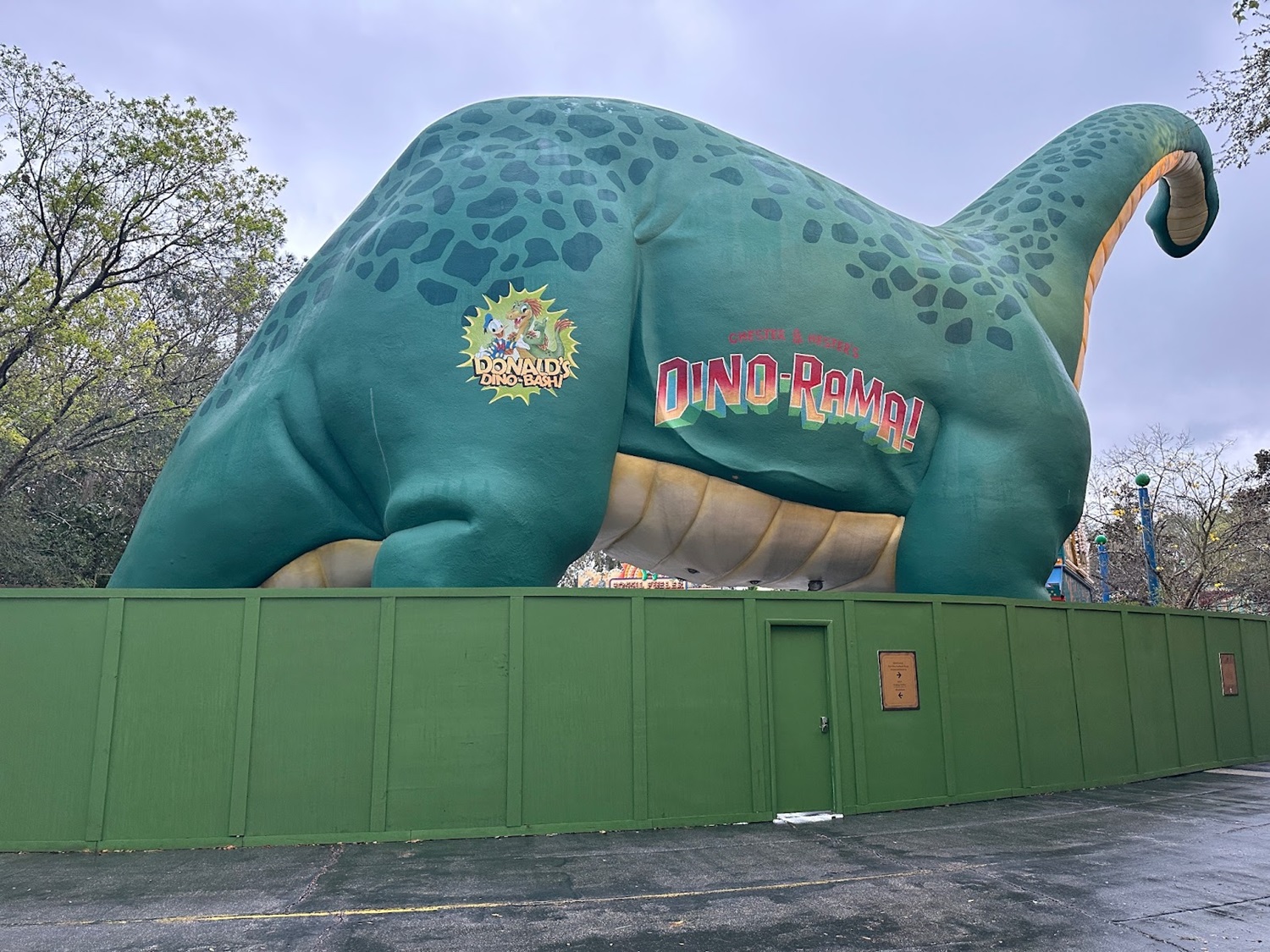 - The large Cementosaurus, which served as the entrance to Dino-Rama from the other side approaching from Asia, is still in place at this time.