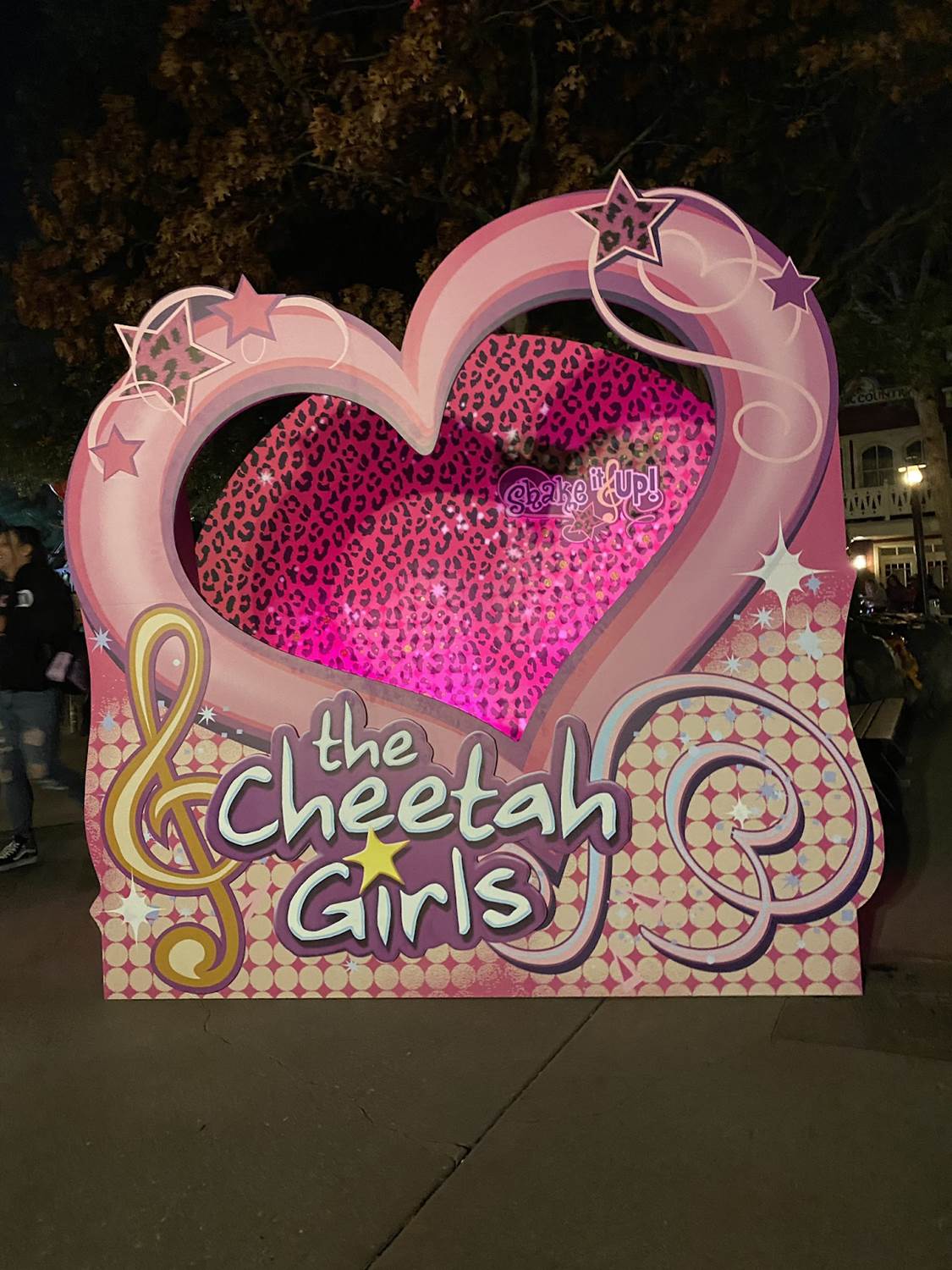All around the park, a slew of photo backdrops featuring a number of classic Disney Channel shows and movies from the 2000s were featured, such as The Cheetah Girls, which got a heart-shaped backdrop complete with their recognizable logo, located in Critter Country.