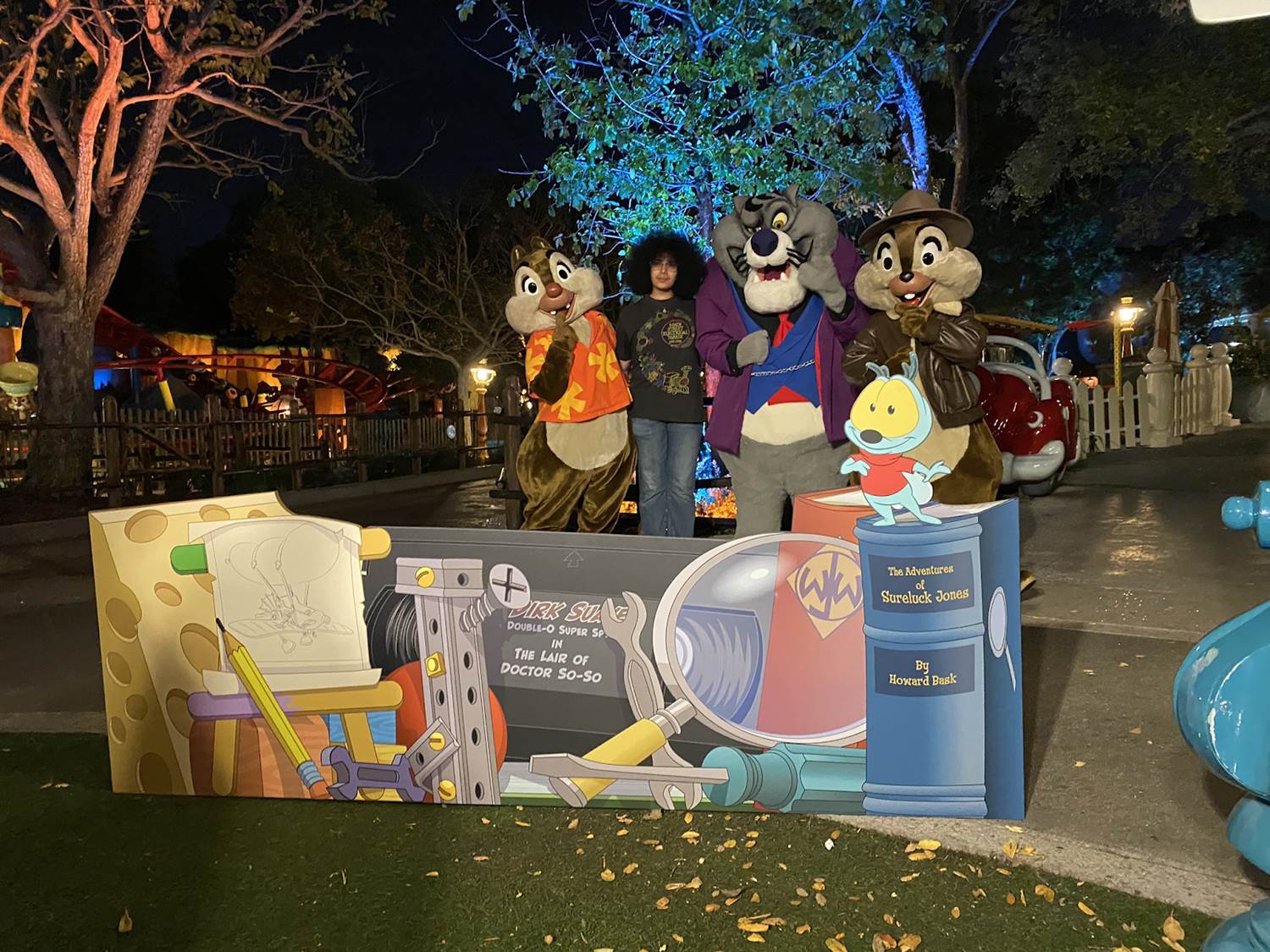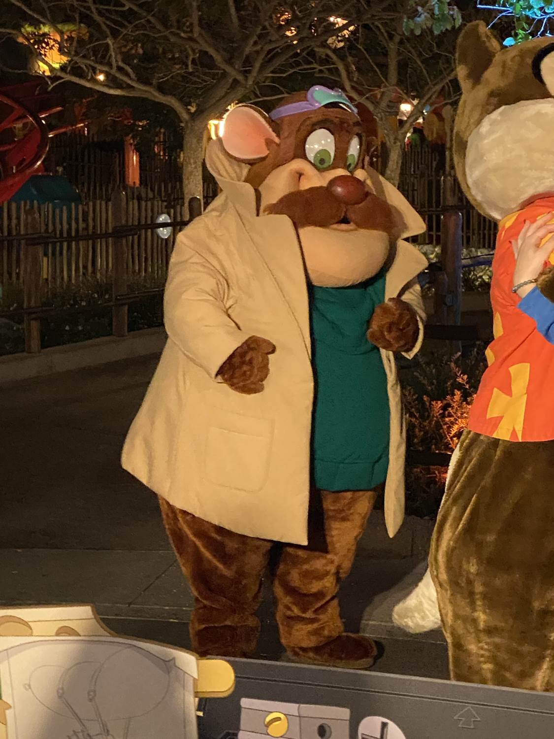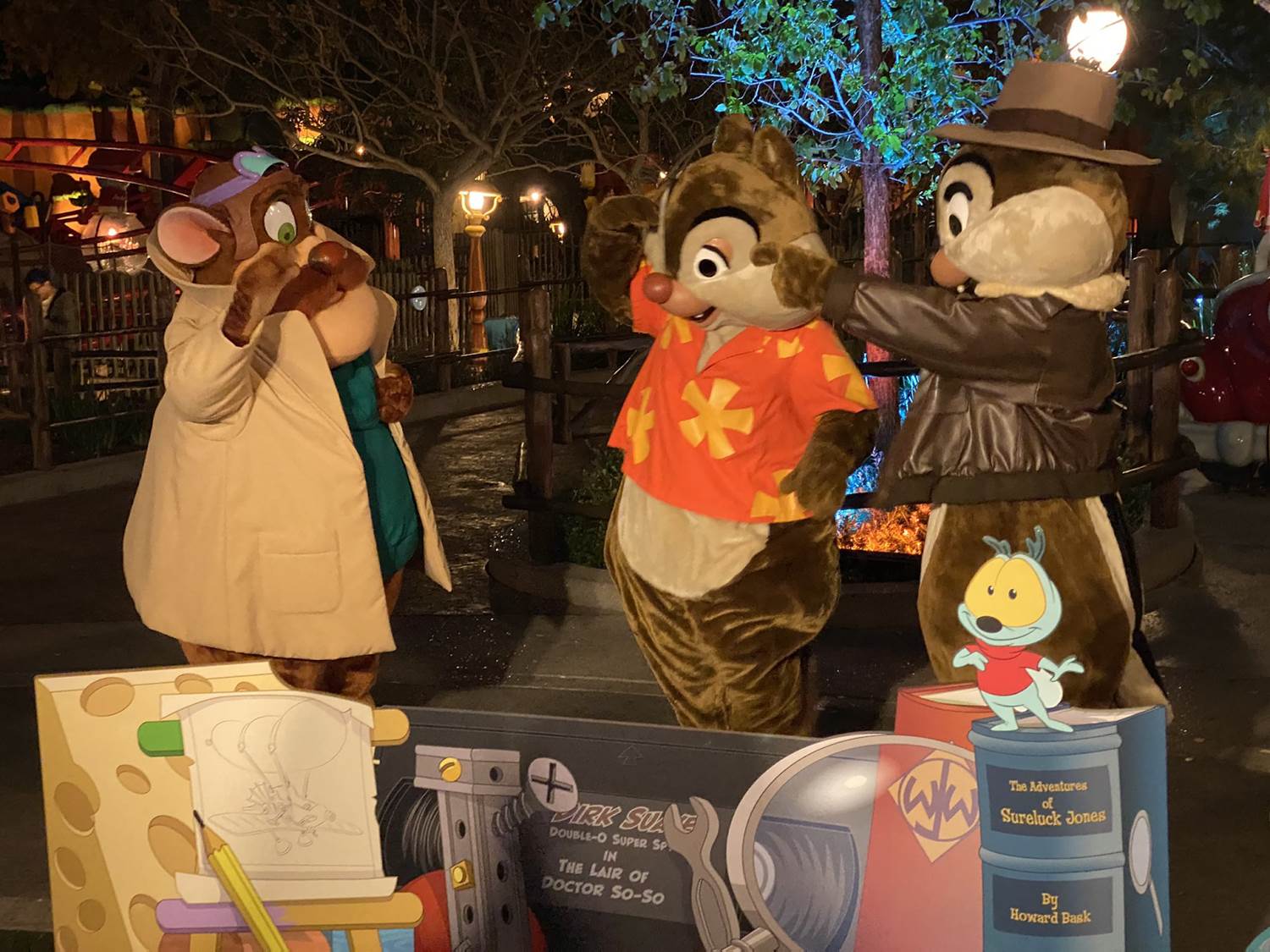 Chip and Dale appeared in their Rescue Rangers outfits alongside two very rare characters, Fat Cat and Monterey Jack, appropriately near their very own coaster in Mickey’s Toontown.