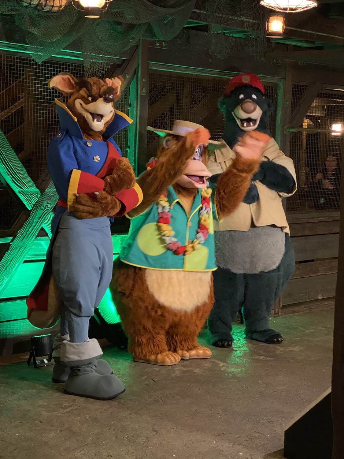Don Karnage, Louie, and Baloo from TaleSpin were hanging out in Adventureland.