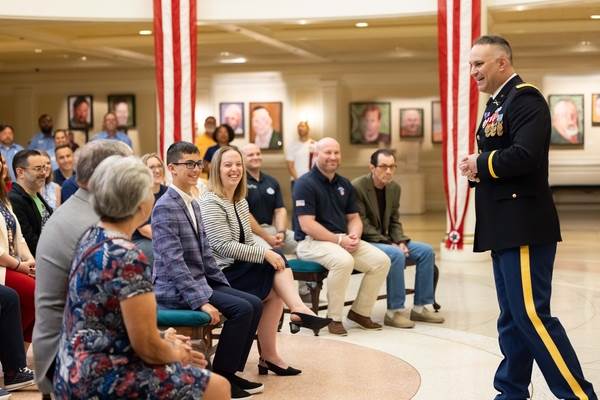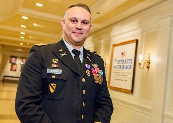- The emotional and uplifting ceremony was performed before an audience of the veteran’s family and fellow cast members. Dressed in his Army service uniform, Arant was surrounded by the pavilion’s current exhibit “Portraits of Courage." The showcase features more than 60 portraits commissioned by former President George W. Bush to honor and recognize post-9/11 military veterans.