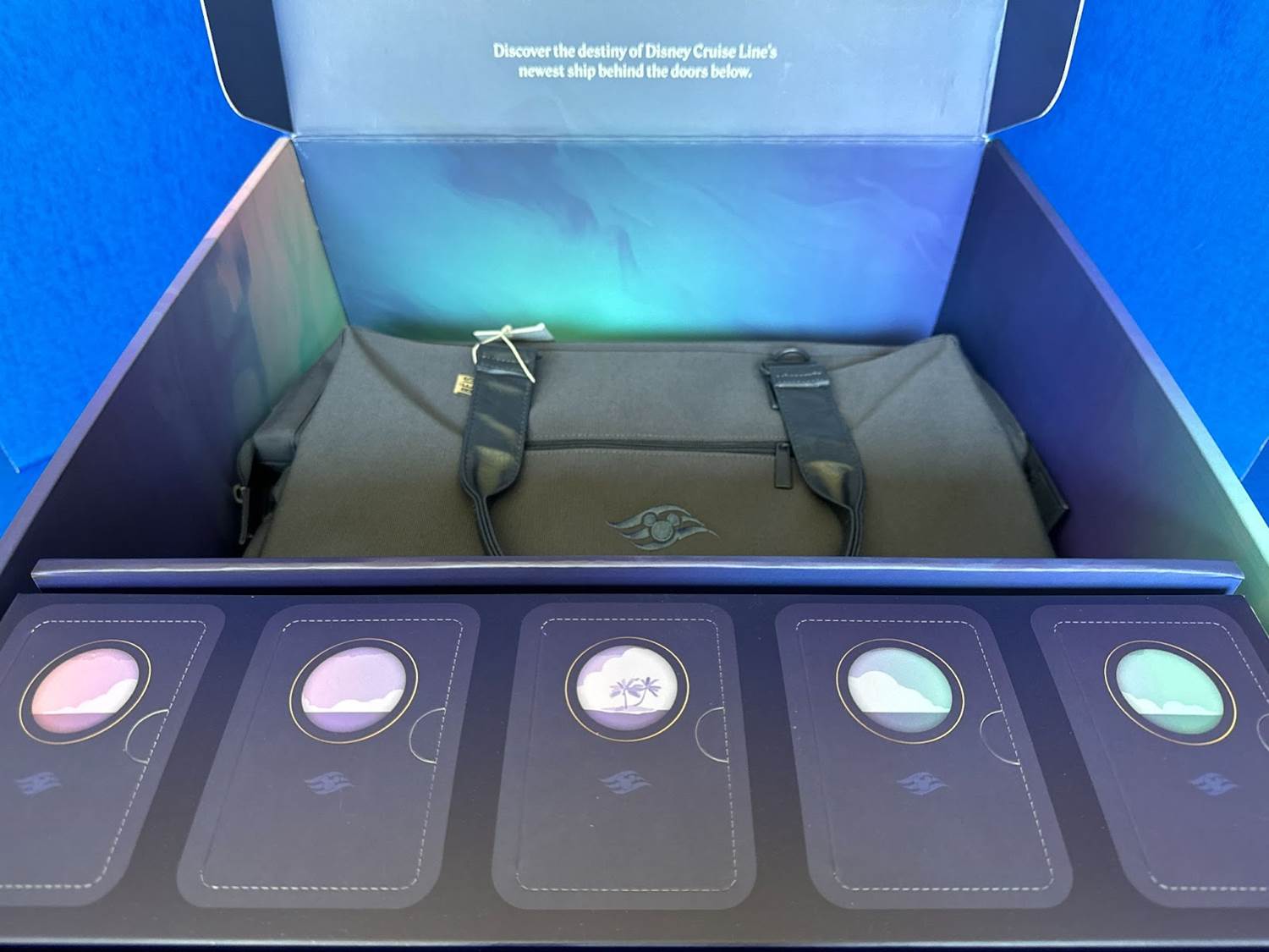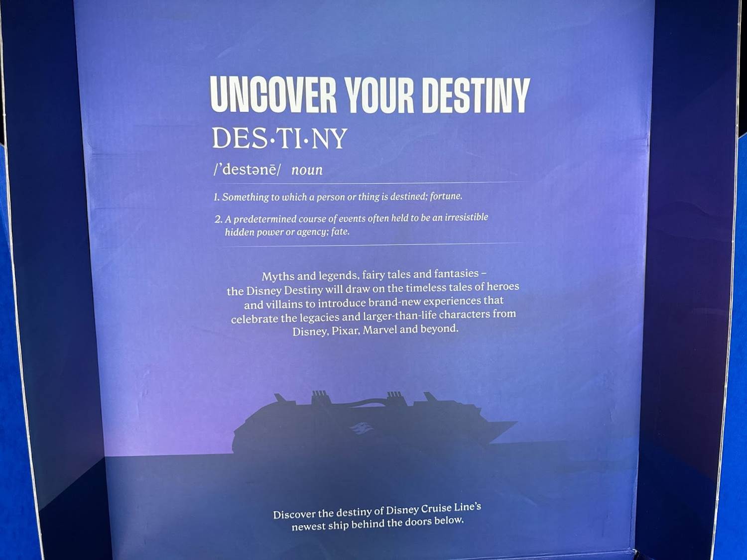 The interior of the box includes a definition of the ship’s name, as well as a paragraph about what’s inside the box: “Myths and legends, fairy tales and fantasies - the Disney Destiny will draw on the timeless tales of heroes and villains to introduce brand-new experiences that celebrate the legacies and larger-than-life characters from Disney, Pixar, Marvel and beyond."