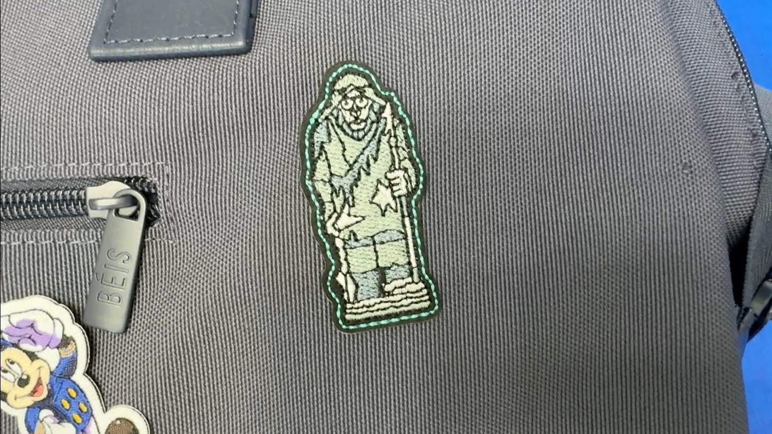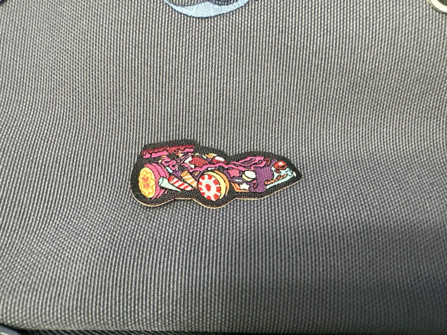 Underneath each door was a package of two stick-on patches to decorate the travel bag with.