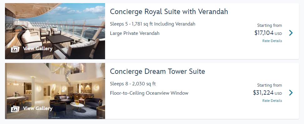 - Depending on the sailing date, there’s a $14K difference compared to the current top-of-the-line suite, the Concierge Royal Suite with Veranda.
