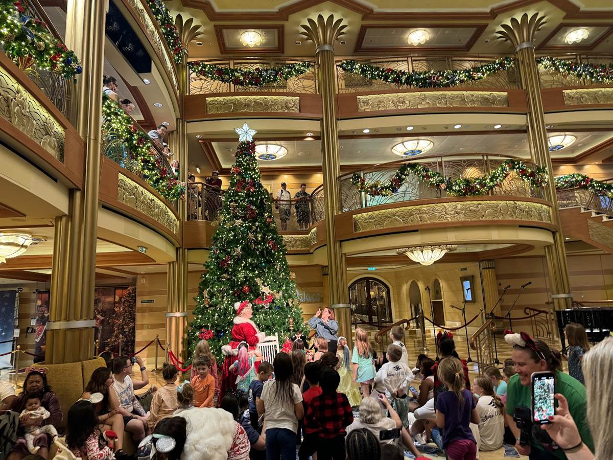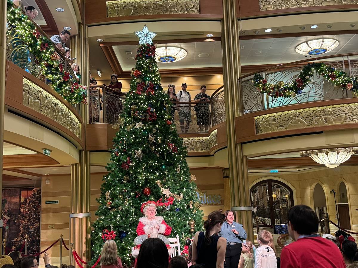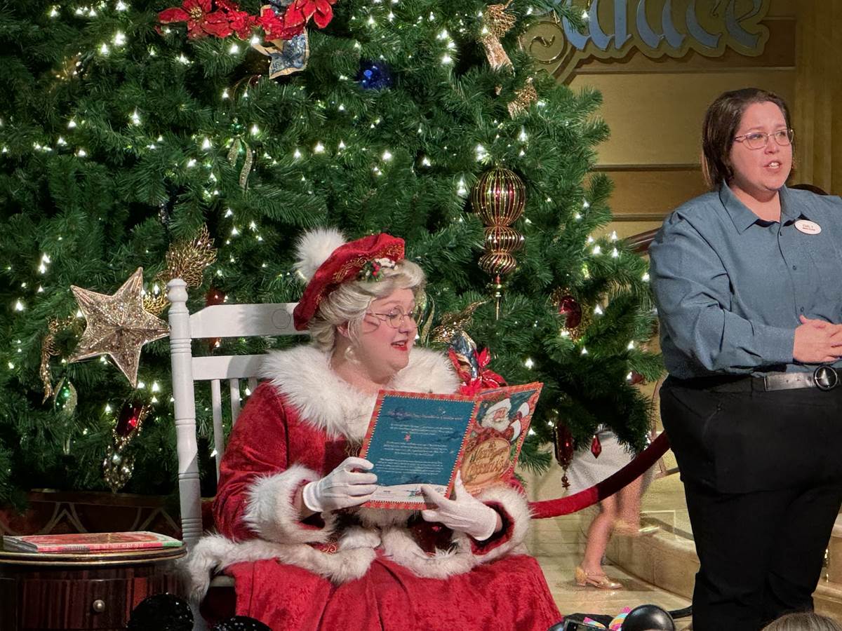However, it’s Mrs. Claus who steals the show in our video above as she entertains guests in the atrium reading some classic holiday stories to those aboard the Disney Dream.