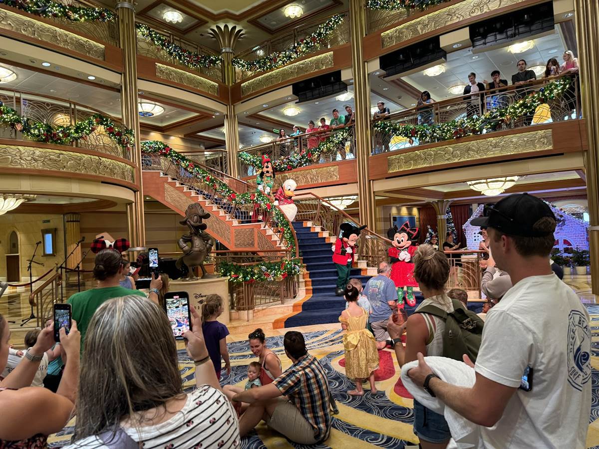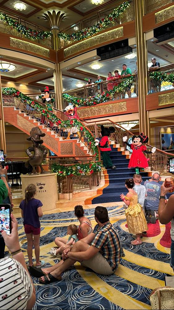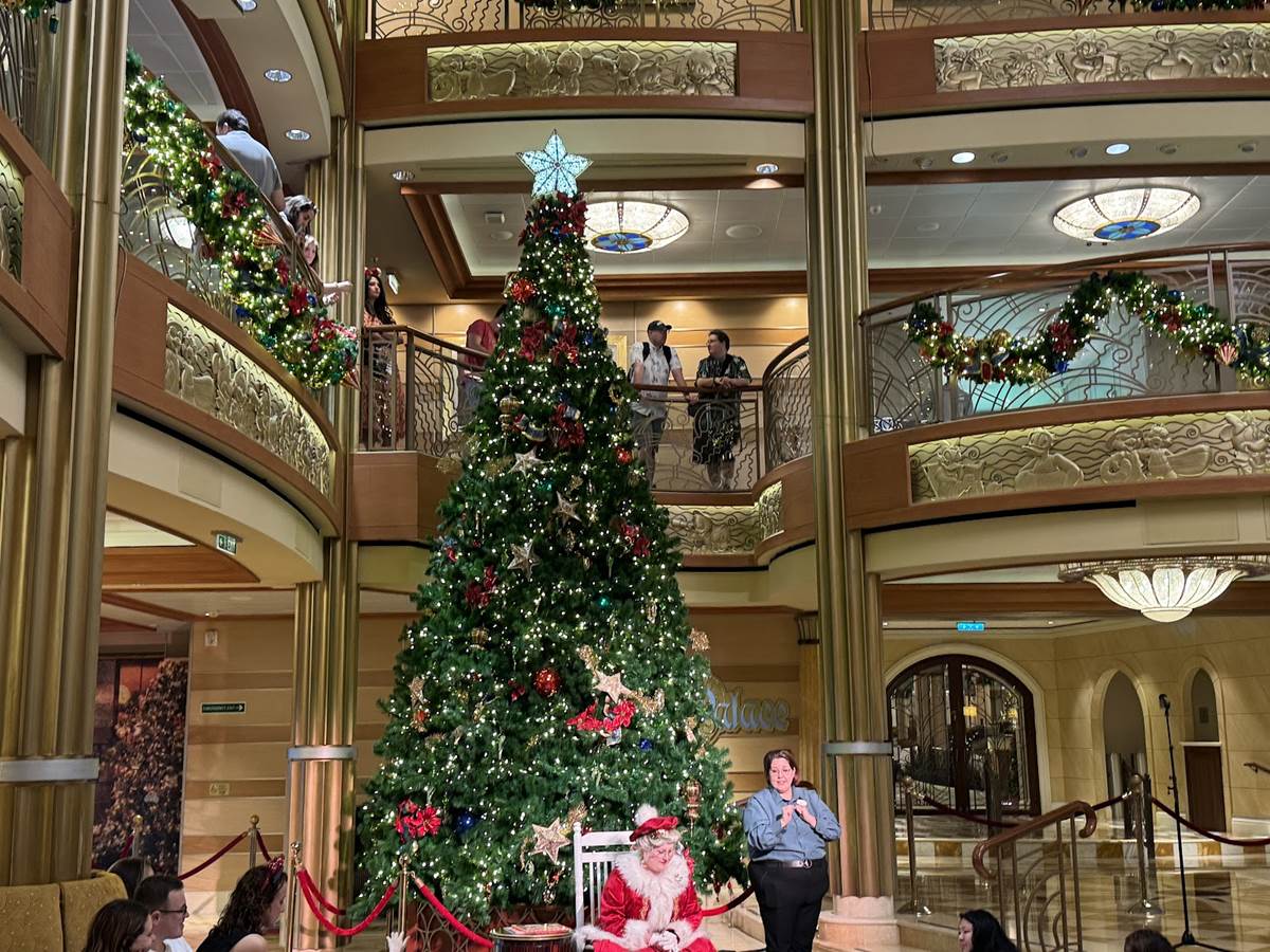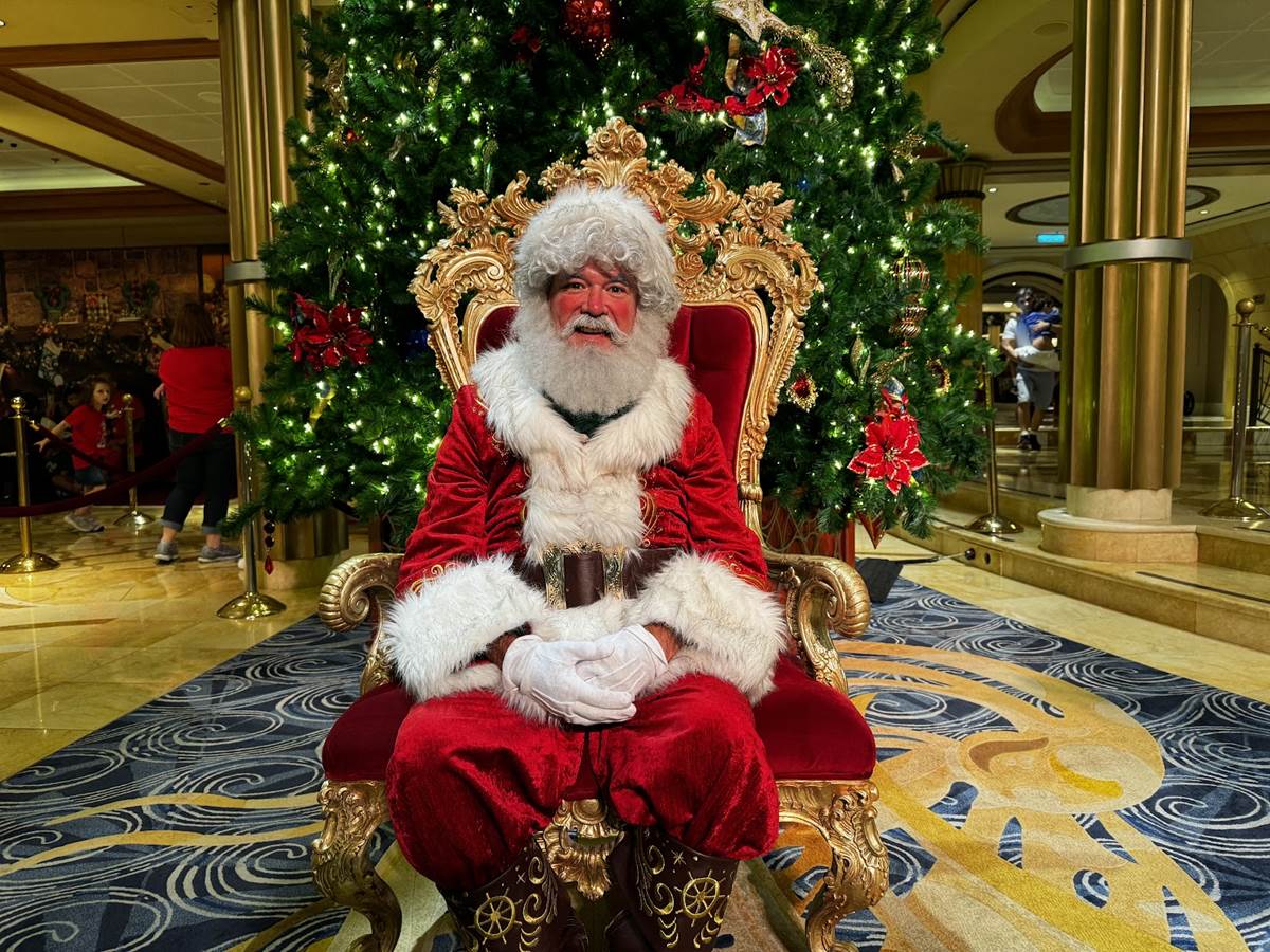 However, it’s Mrs. Claus who steals the show in our video above as she entertains guests in the atrium reading some classic holiday stories to those aboard the Disney Dream.