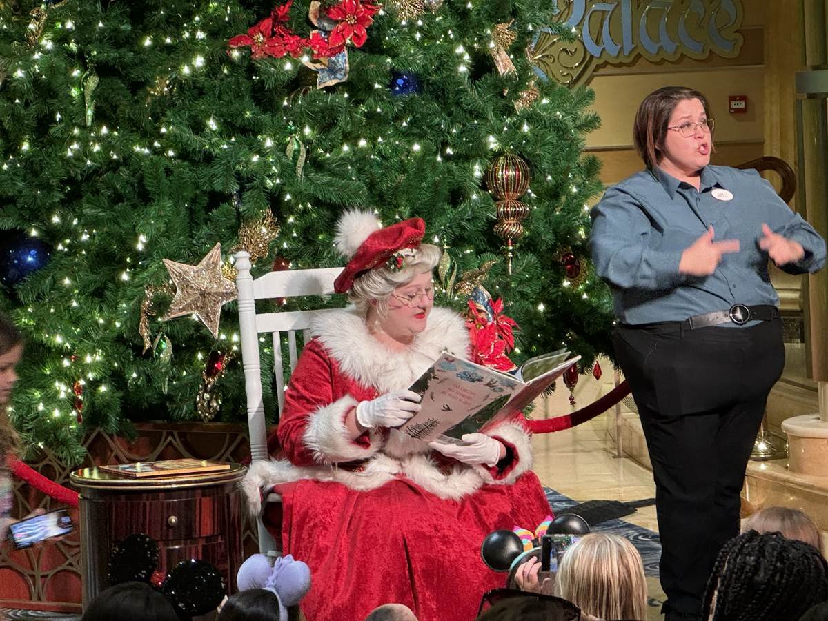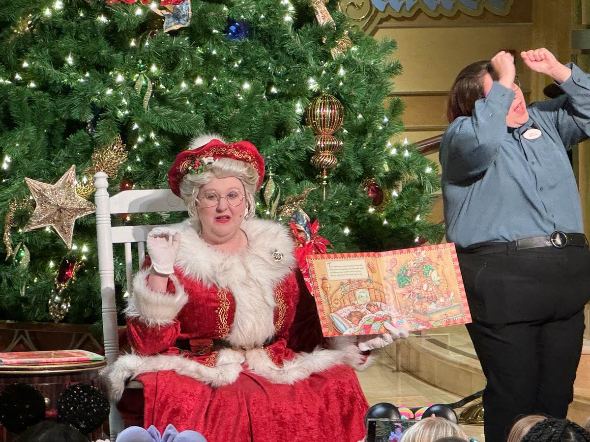 As you can see, Mrs. Claus isn’t the only one who appears, as Mickey and his friends also show up in the atrium to help with storytime, as well as the big man - Santa Claus himself.