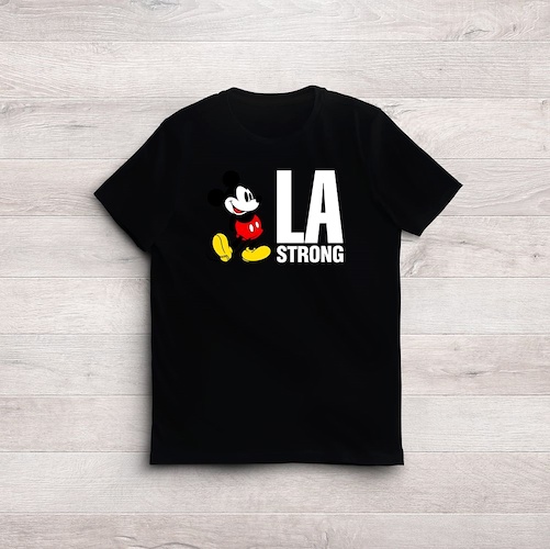 In response to the wildfires impacting Southern California, Disney has unveiled new "LA Strong" T-shirts. Donations will be made to the American Red Cross with each purchase.