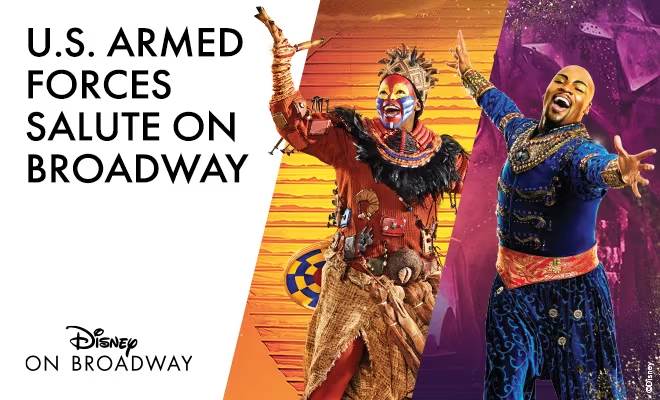 - Disney on Broadway is also proud to salute members of the U.S. Armed Forces at The Lion King and Aladdin on Broadway in New York City.