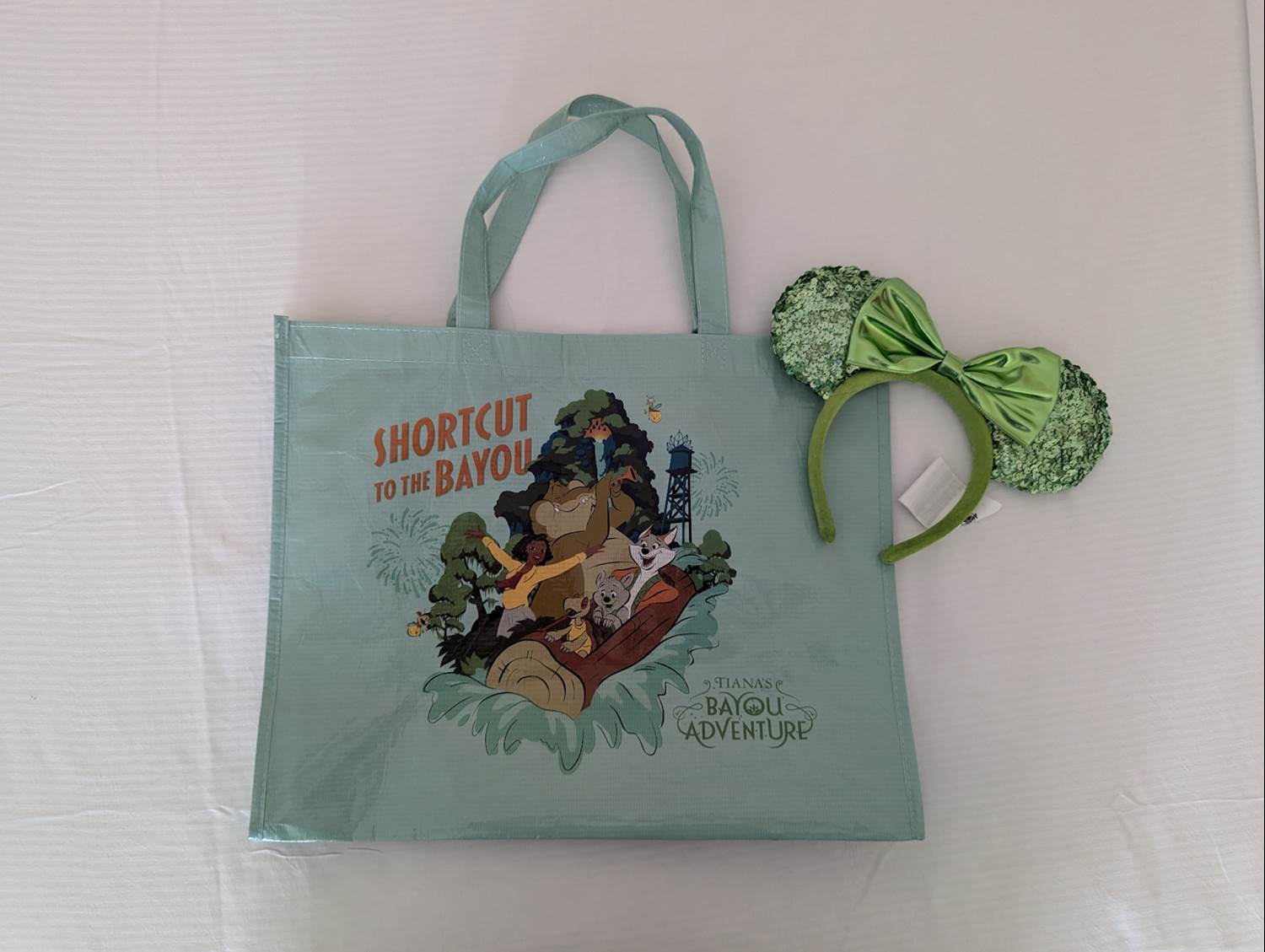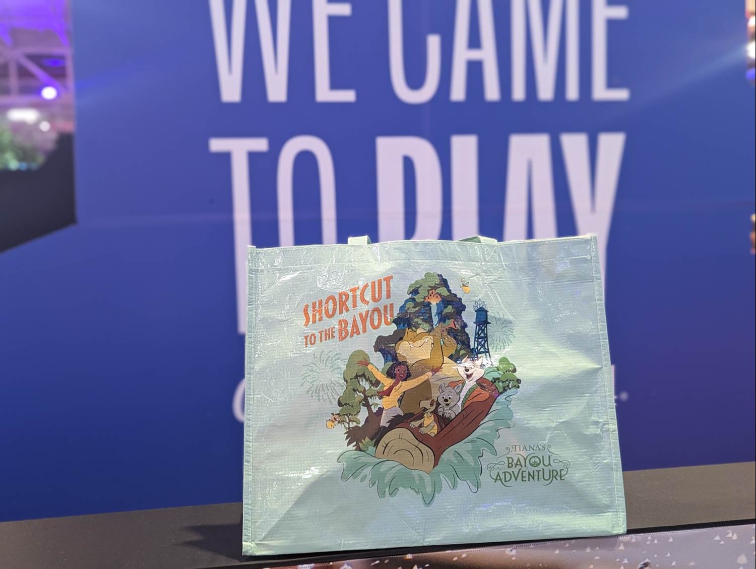 Everyone who attended the booth received this Tiana's Bayou Adventure tote bag along with a pair of mouse ears.