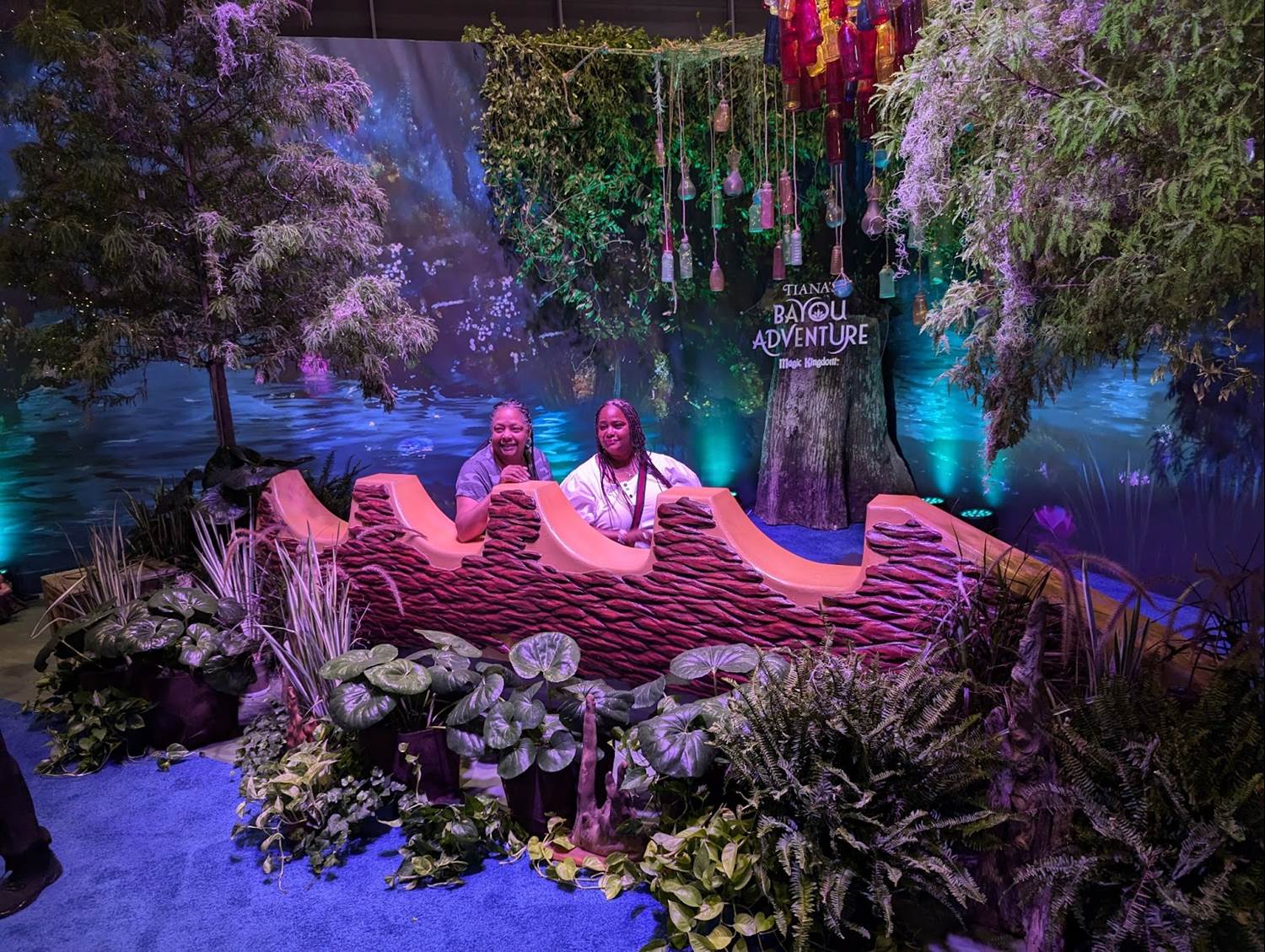 Next to a replica of the Tiana’s Foods water tower, attendees could take a picture alongside a faux log from the attraction.