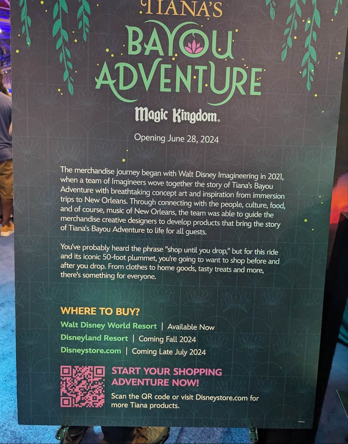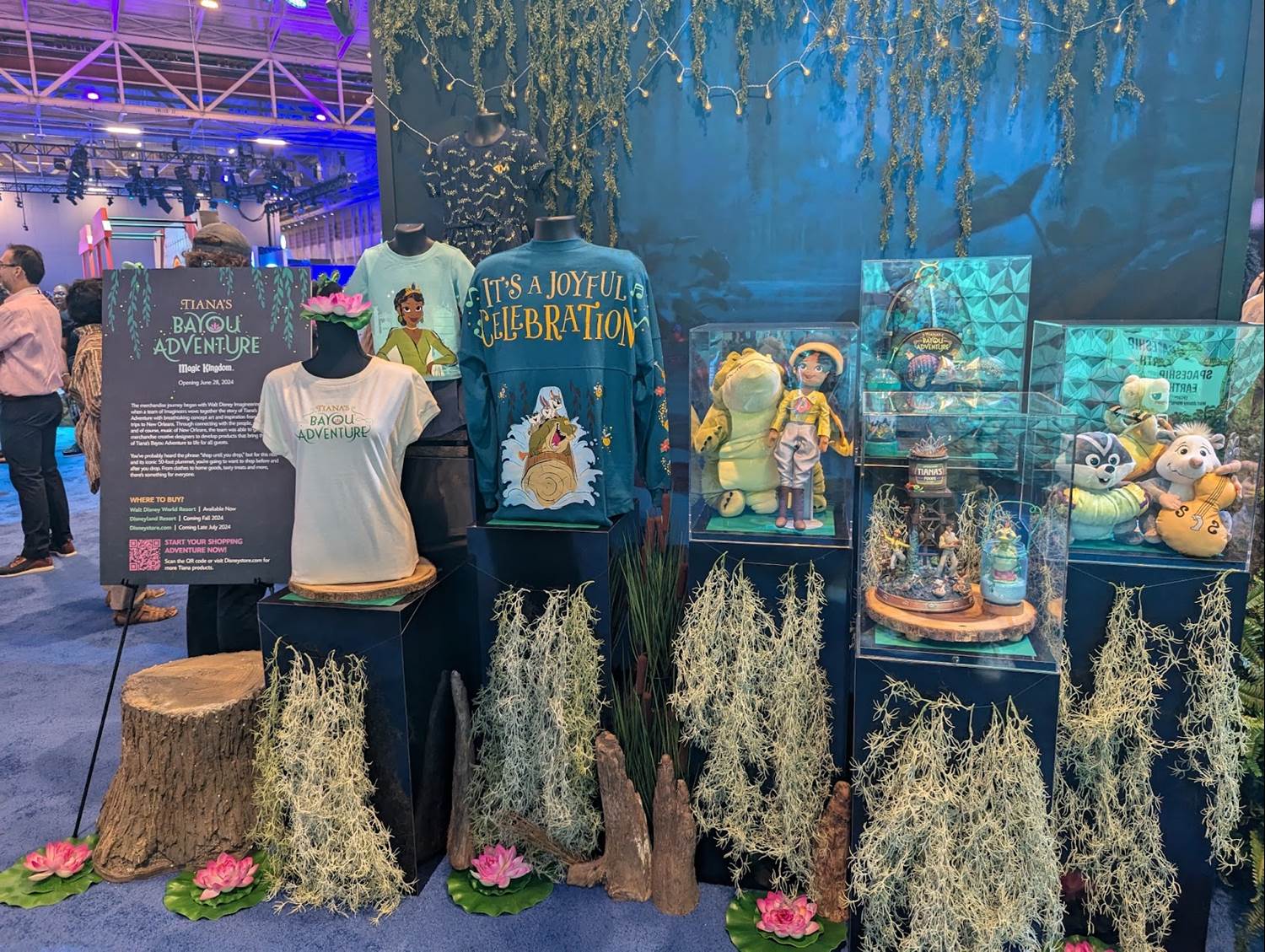 While not available to purchase at the event, plenty of Tiana’s Bayou Adventure merchandise was on display. Interestingly, a sign noted that items will arrive on Disney Store later this month and at the Disneyland Resort in "Fall 2024."