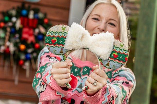 - Matching Minnie & Mickey Christmas Sweaters: These cozy Mickey and Minnie Mouse Christmas sweaters are the perfect match. Minnie’s features a shade of pink sugar cookie icing, while Mickey sports fir tree hues. Both are sprinkled with classic zigzags and Christmas trees.