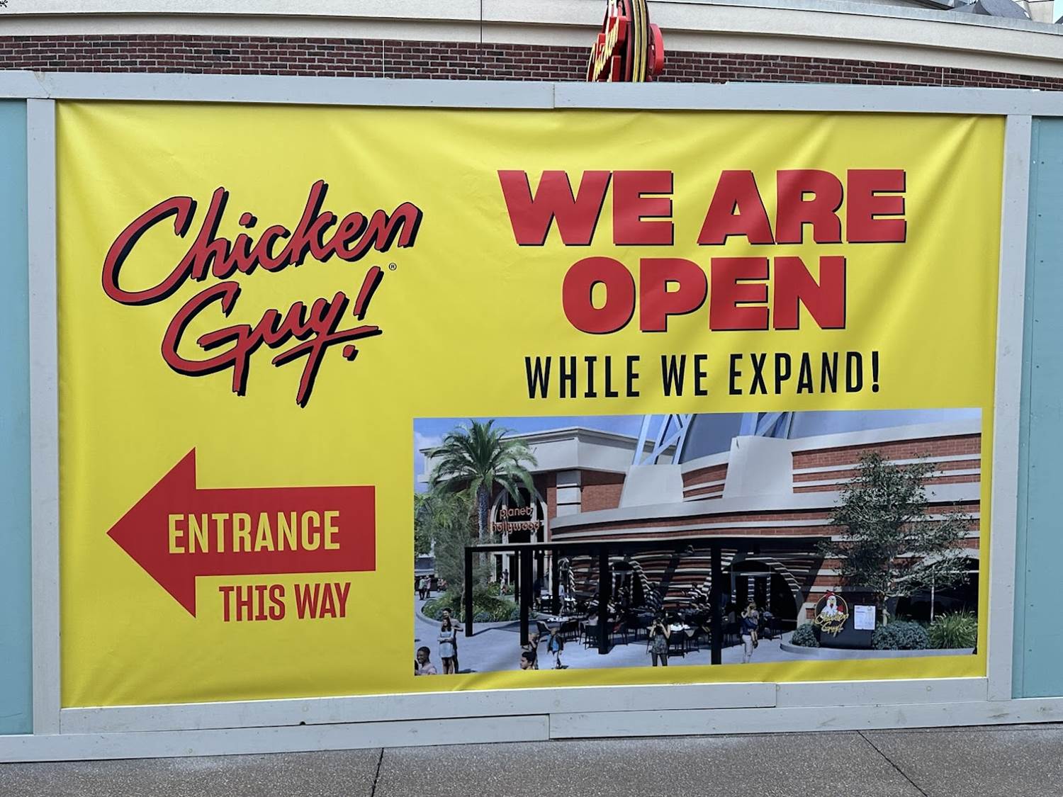 The Disney Springs Chicken Guy location is undergoing an expansion of their outdoor seating area.