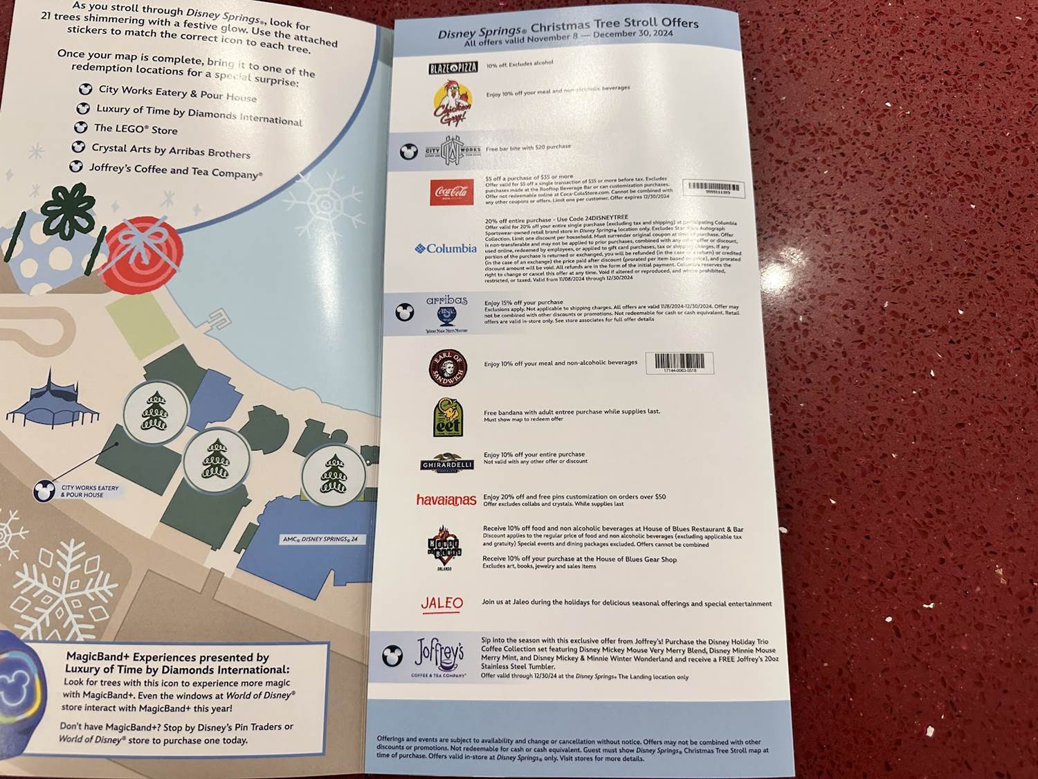 Guests can also pick up a map revealing all the locations of the trees, complimentary of course. Once a tree is found, guests can apply a unique sticker to the proper location and return a complete map for a special surprise.