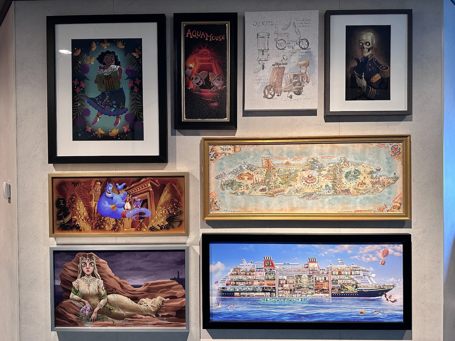 With the debut of the Disney Treasure, the latest ship in the Disney Cruise Line fleet, comes a ship’s-worth of new art that fans are sure to want to get their hands on. Everything from stateroom art to art featured in the lounges and stairwells. Fortunately, just like on the Disney Wish (sister ship of the Disney Treasure), an Art on Demand system has been installed for guests to peruse and purchase from.