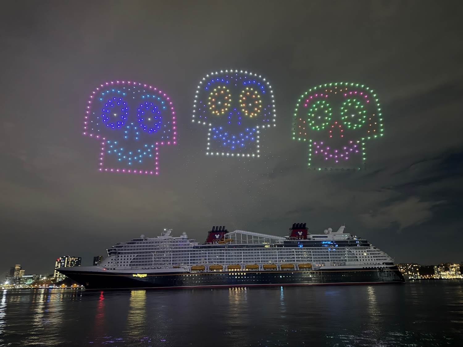 The christening was celebrated with a drone show that featured a number of jaw-dropping moments, inspired by the multiple properties found aboard the ship, such as Coco, The Haunted Mansion and Moana. The performance began with an appearance from Jordin Sparks, singing the theme song to the Disney Treasure – “Live the Adventure."