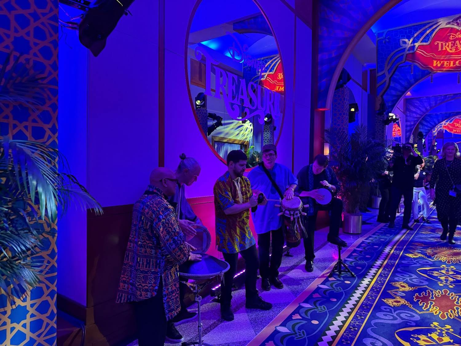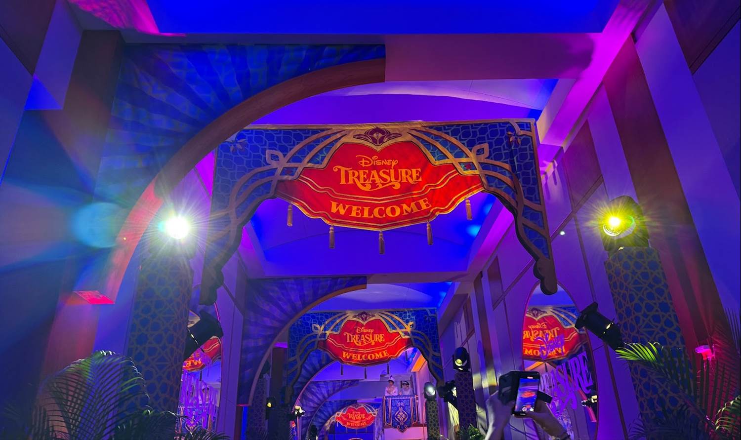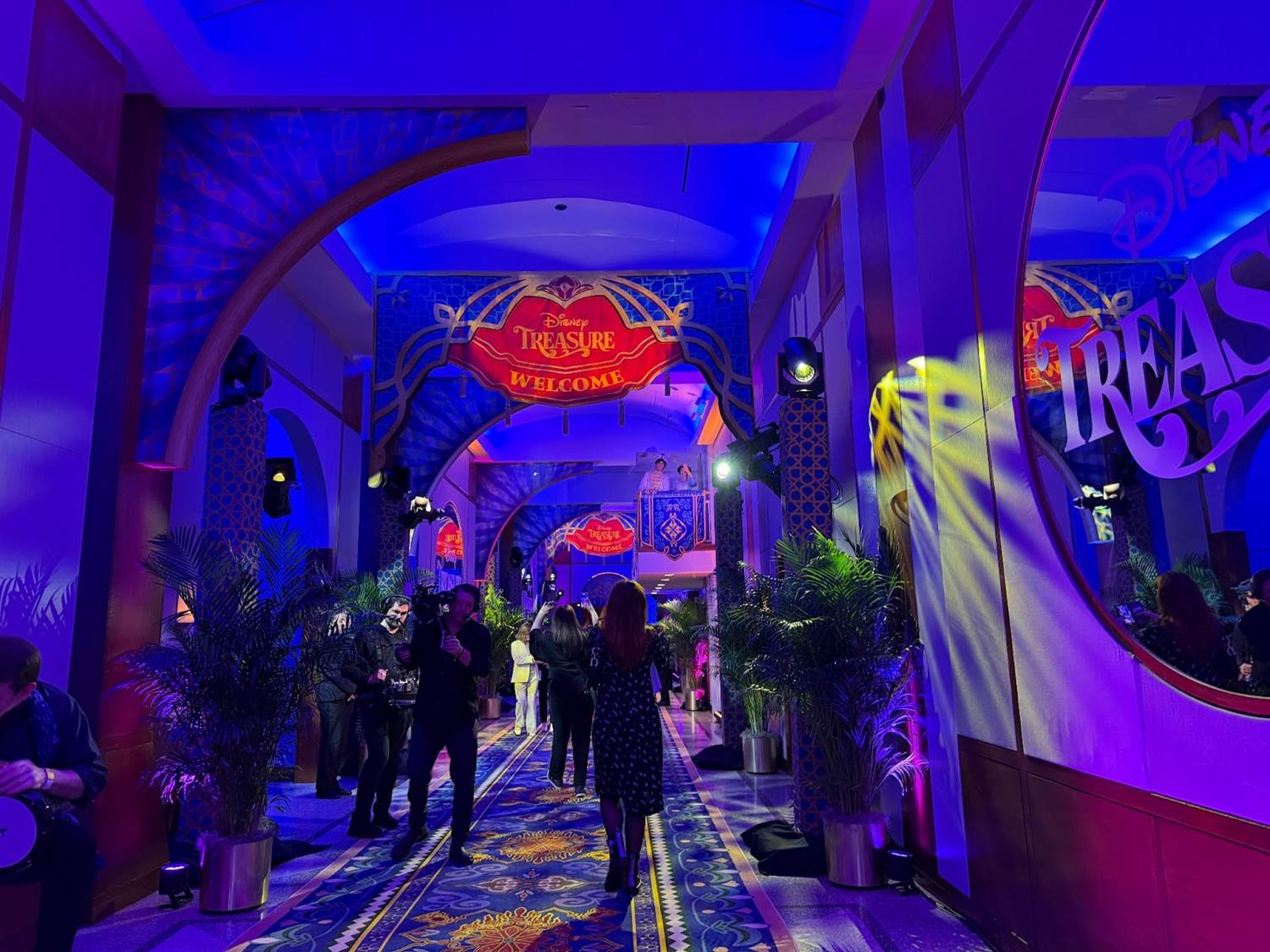 The event began at a venue in New York City, where attendees were welcomed in fabulous style by these Disney Treasure banners that call to mind Agrabah – which is appropriate as Aladdin and Jasmine feature as the lobby statue for the Grand Hall of Disney Treasure.