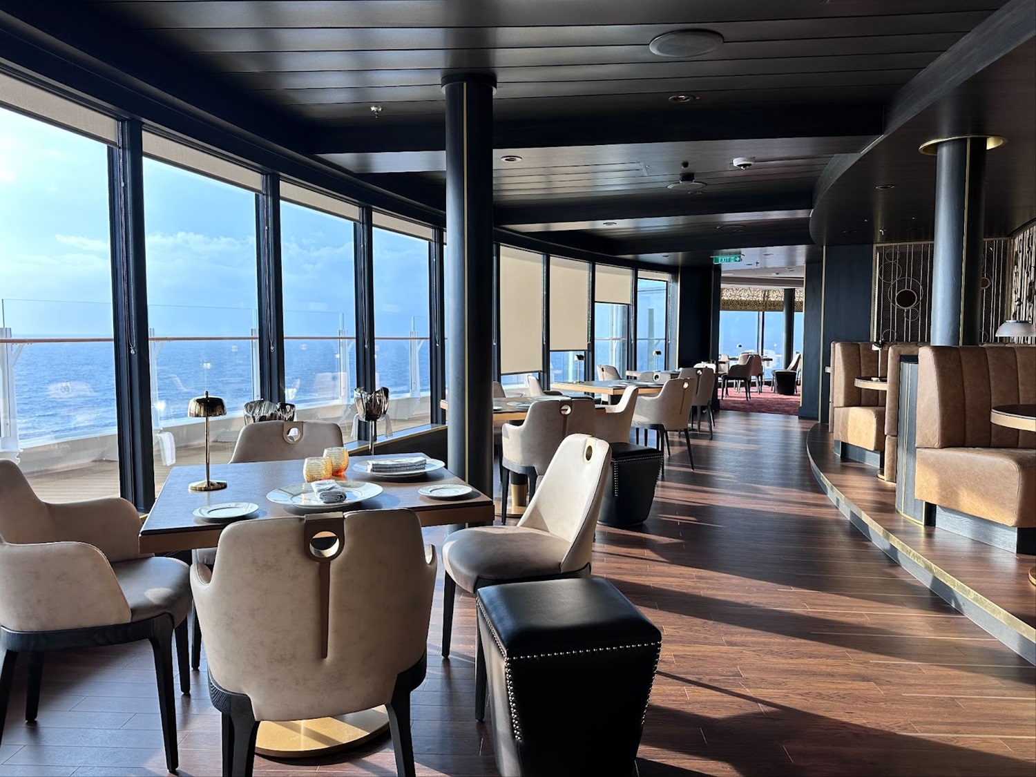 Located at the entrance of Enchanté and Palo Steakhouse, step inside The Rose to enjoy a delicious cocktail. The cozy lounge features spectacular views of the ocean while bringing guests into the ornate world of Beauty and the Beast. Featuring a golden rotunda entrance, the lounge features classic velvet seating and mood lighting to enhance your cocktail experience.