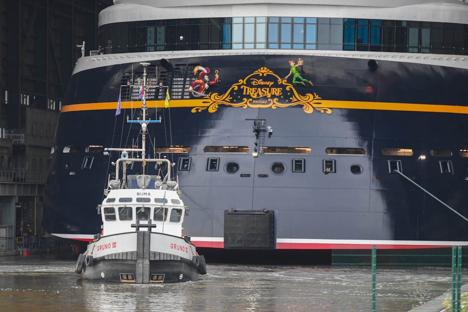 Disney Treasure Reaches Major Milestone Being Floated Into Shipyard Harbor