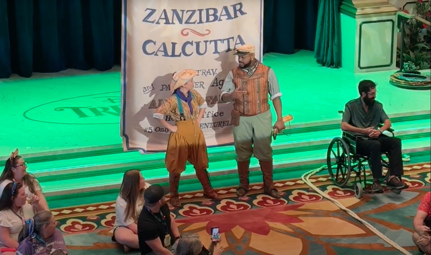 If you’ve been on a Disney Cruise Line cruise, you know that playing some of the many games available can be a very fun way to pass the time at sea. Some of these games are trivia or game show-style, but others can be more interactive and physical. The latter is the case with the Disney Treasure’s new "The Jungle Cruise: An Interactive Story Adventure."