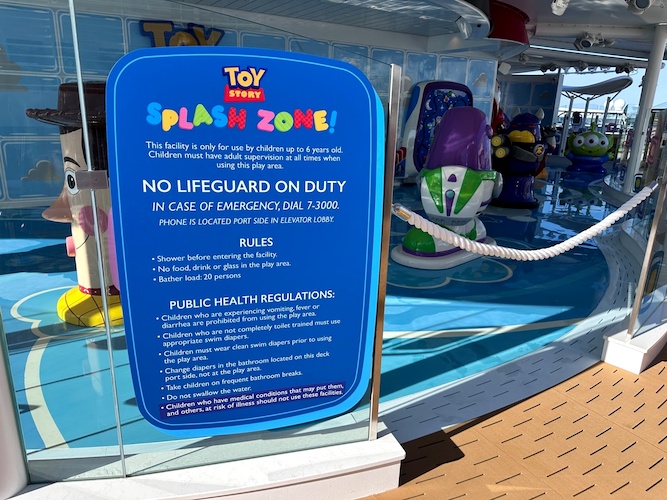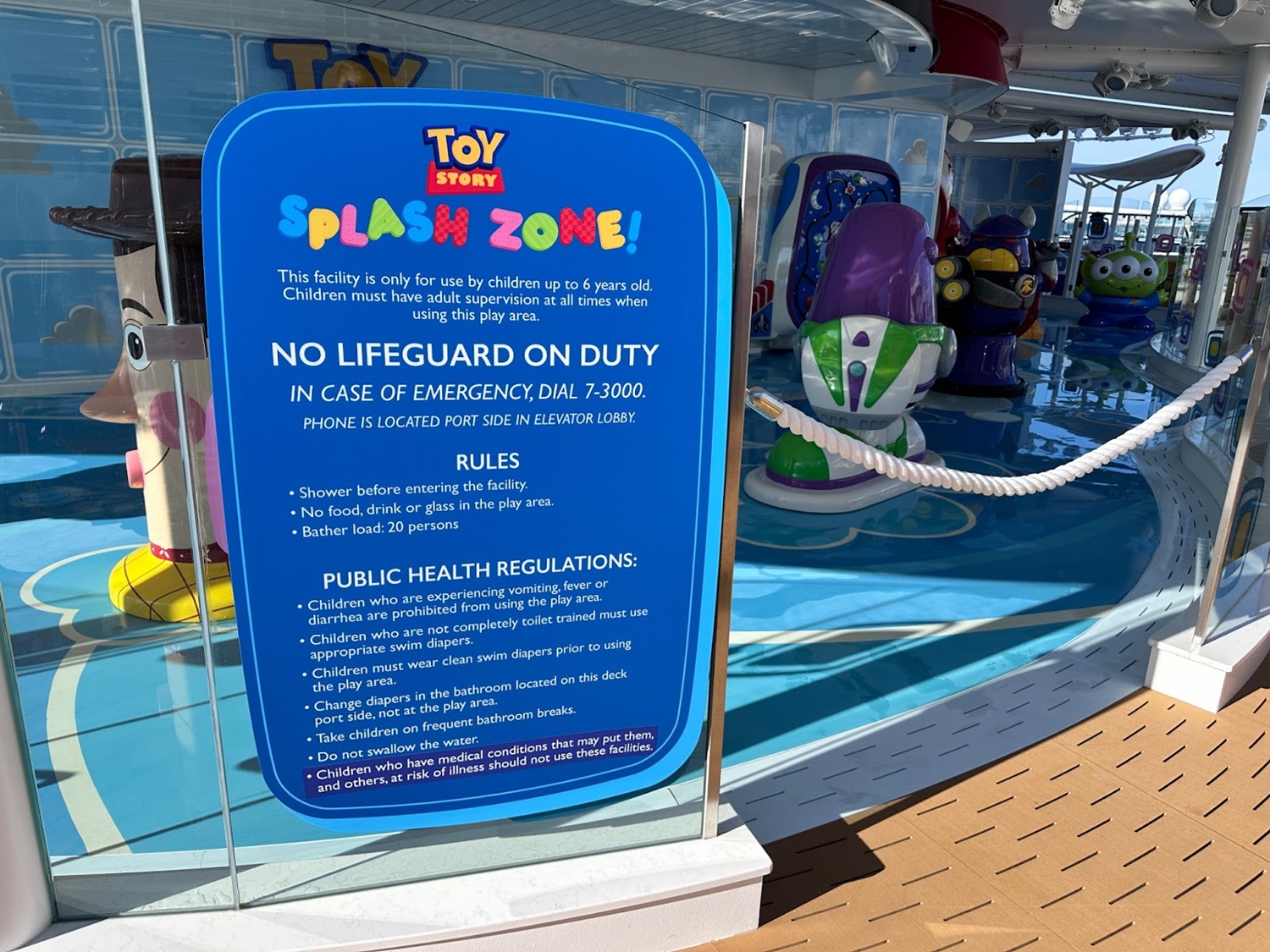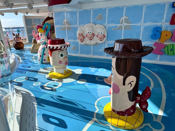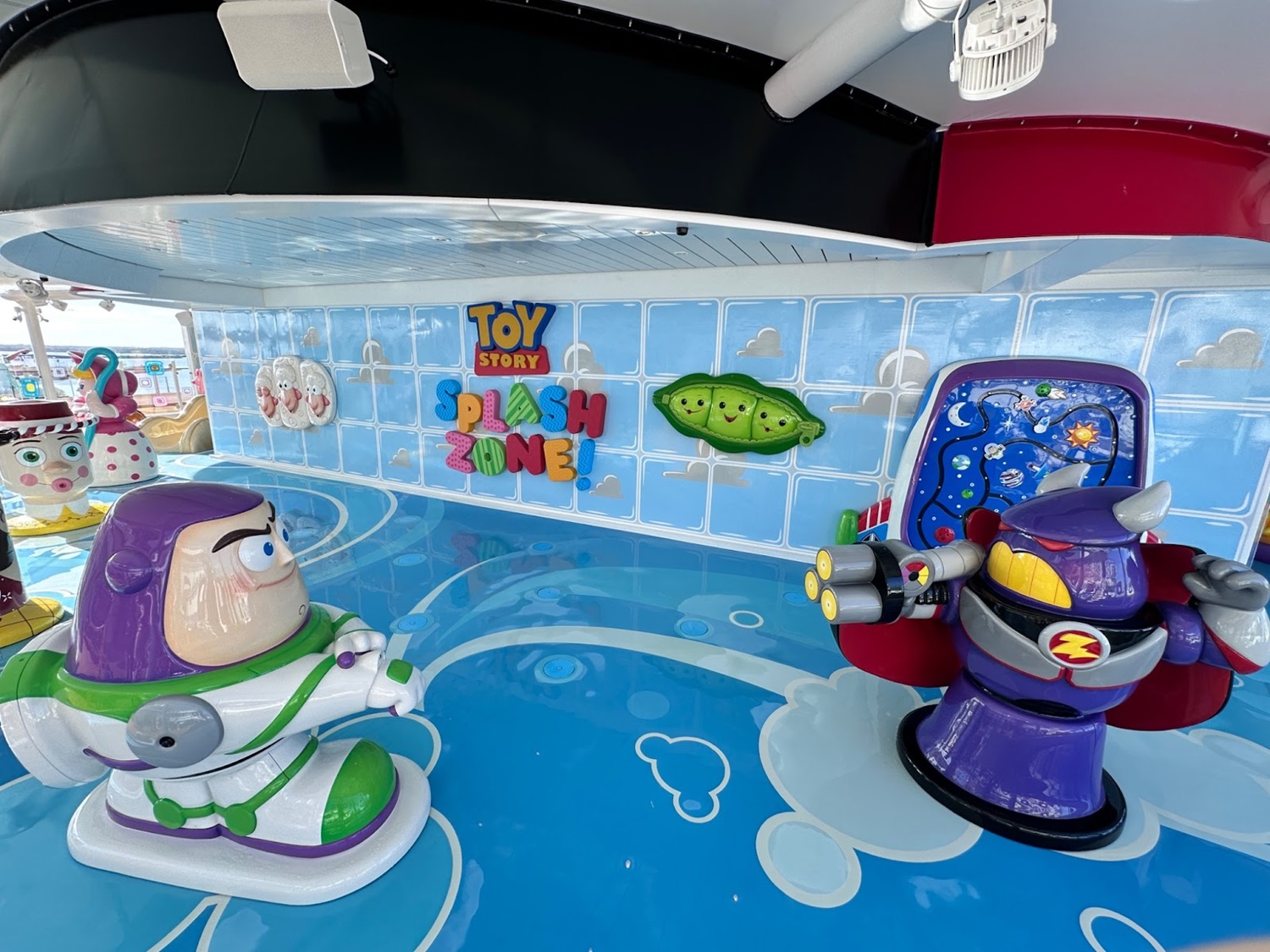 Toy Story Splash Zone can be found on Deck 12, near another Toy Story-themed location, Wheezy’s Freezies.