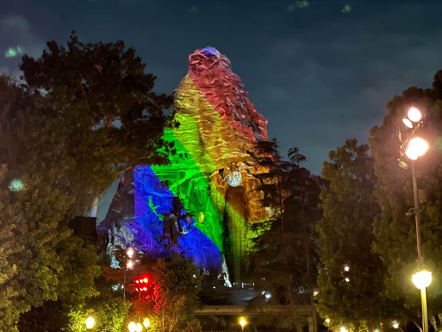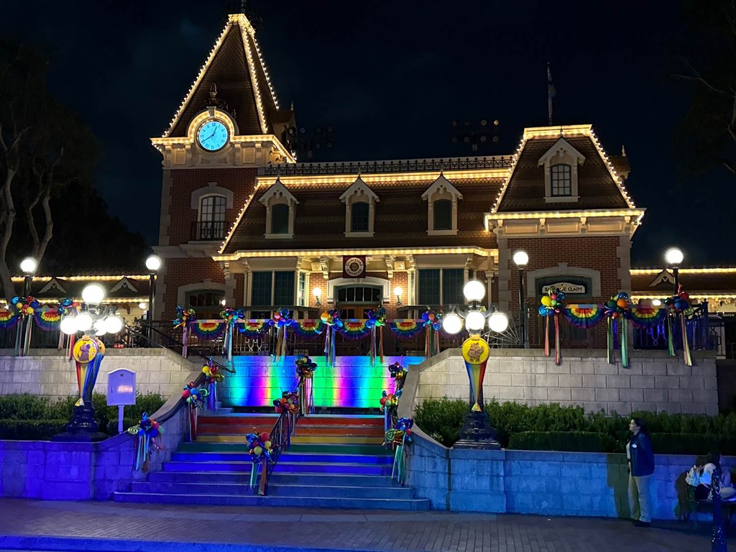 Various icons throughout the park, including the buildings of Main Street U.S.A., Sleeping Beauty Castle and the Matterhorn, were lit up in rainbow colors.