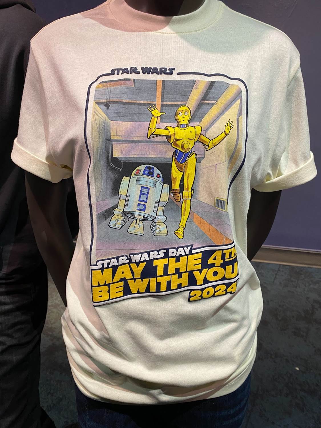While a Star Wars Nite 2024 t-shirt doesn’t appear to have been made, Guests looking for a shirt can get a jump start on this year’s Star Wars Day shopping. The 2024 May the 4th Be With You T-Shirt features animated C-3PO and R2-D2 from the 1985 Star Wars: Droids animated series.