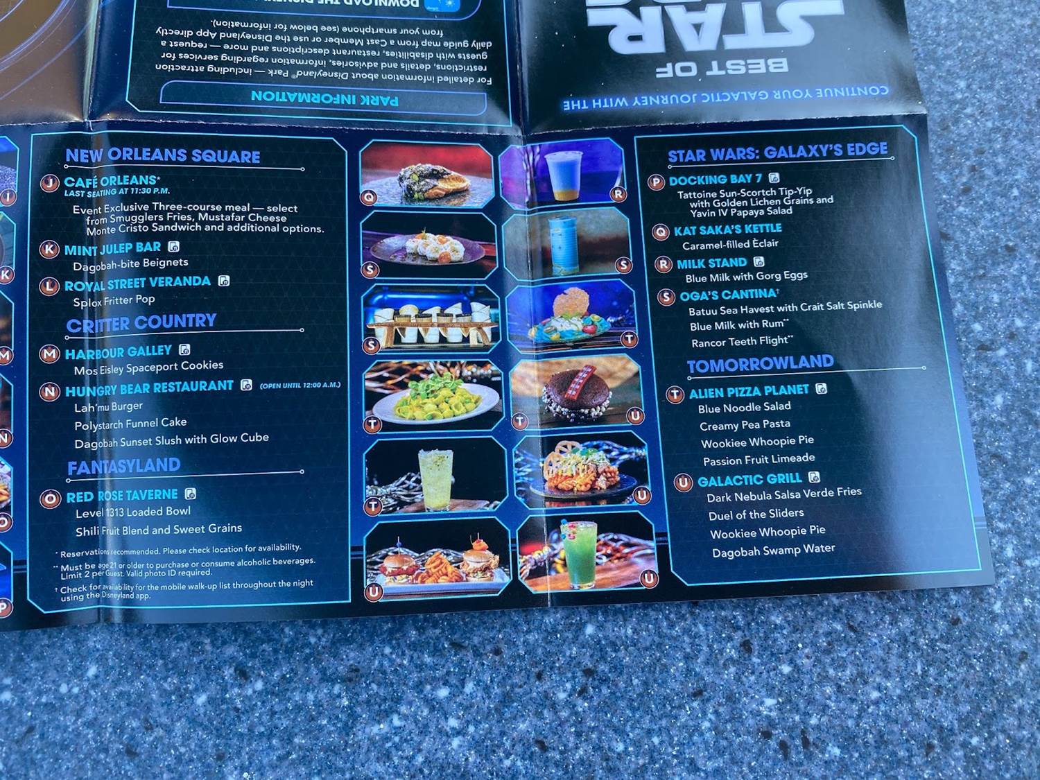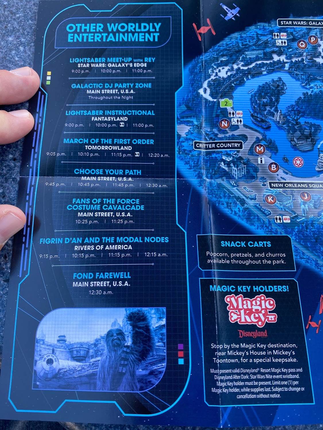 Disneyland After Dark: Star Wars Nite – Guide Map with List of Entertainment, Characters, and Food Items