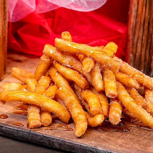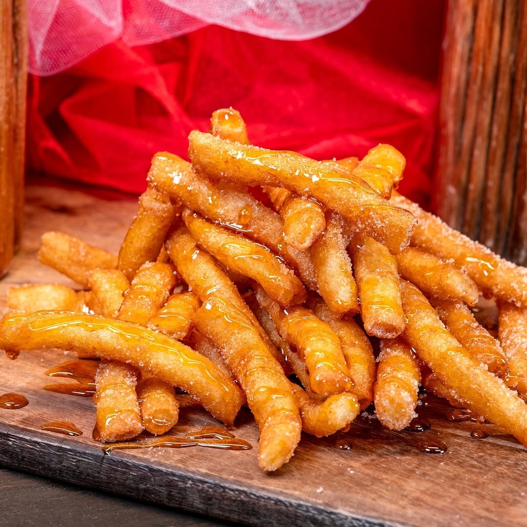 - Hot Honey & Cinnamon Sugar Funnel Cake Fries topped with hot honey and cinnamon sugar (New)