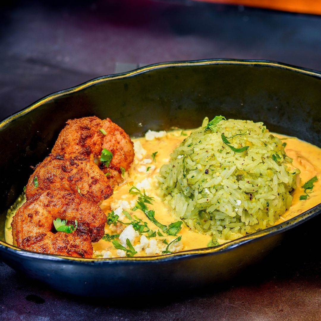 - Kublag Curry: Herb rice, curry-spiced shrimp, creamy chicken curry, cilantro, and feta crumbles at Docking Bay 7 Food and Cargo.