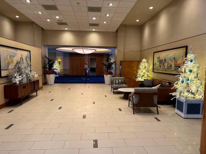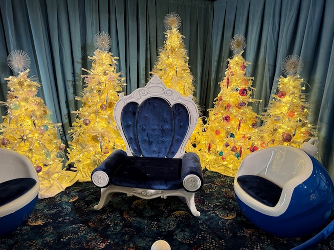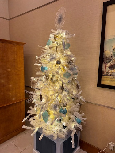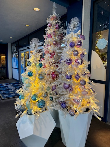 More subtle decorations and Christmas trees throughout the lobby continue the hotel’s wonderful mid-century modern vibes.
