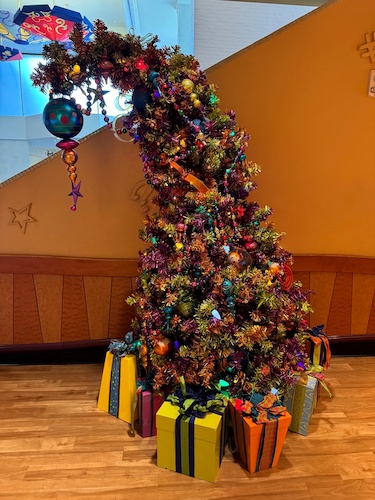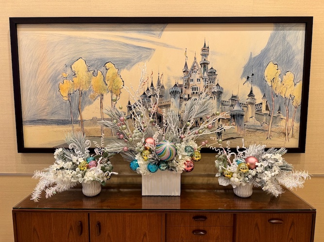 The holiday magic doesn’t stop when you leave the parks at the Disneyland Resort, with the Disneyland Hotel offering a wonderful package of festive decor that ties in perfectly to the hotel’s mid-century vibes.