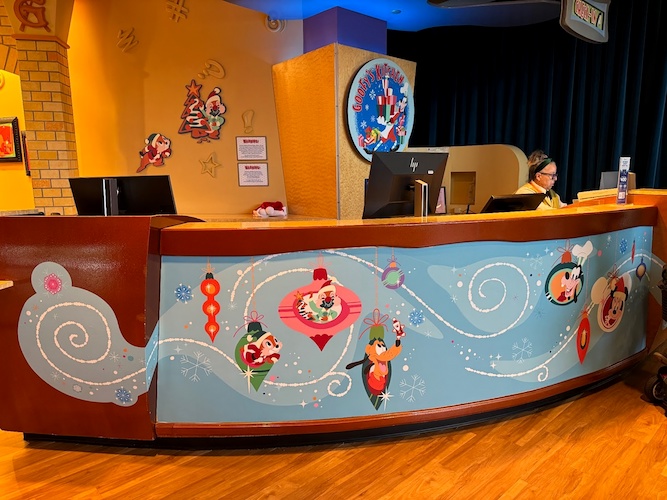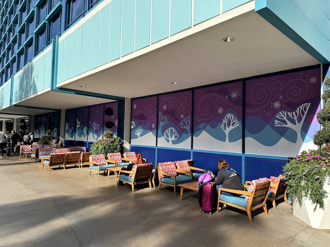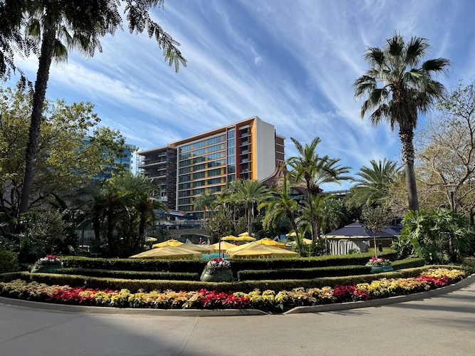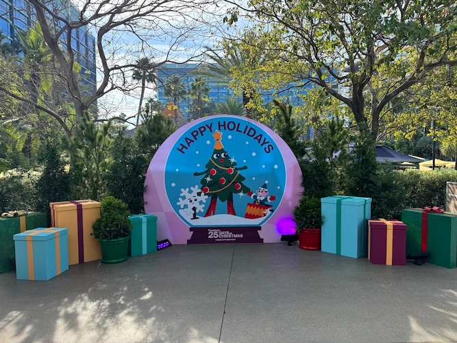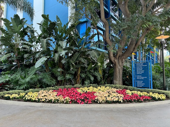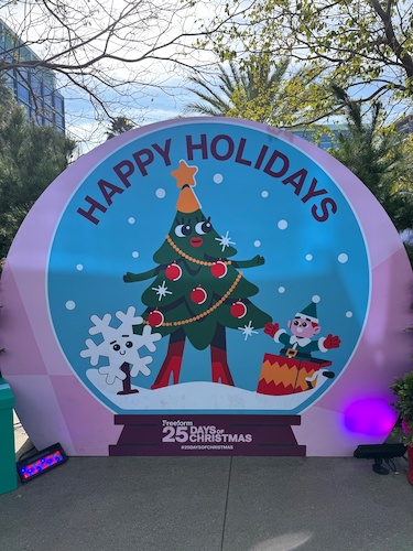 More holiday decor and foliage can be found in the outdoor areas of the hotel, including a promotion for Freeform’s 25 Days of Christmas.