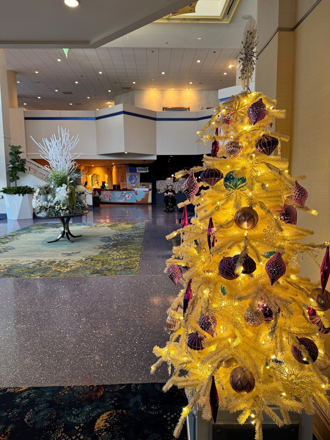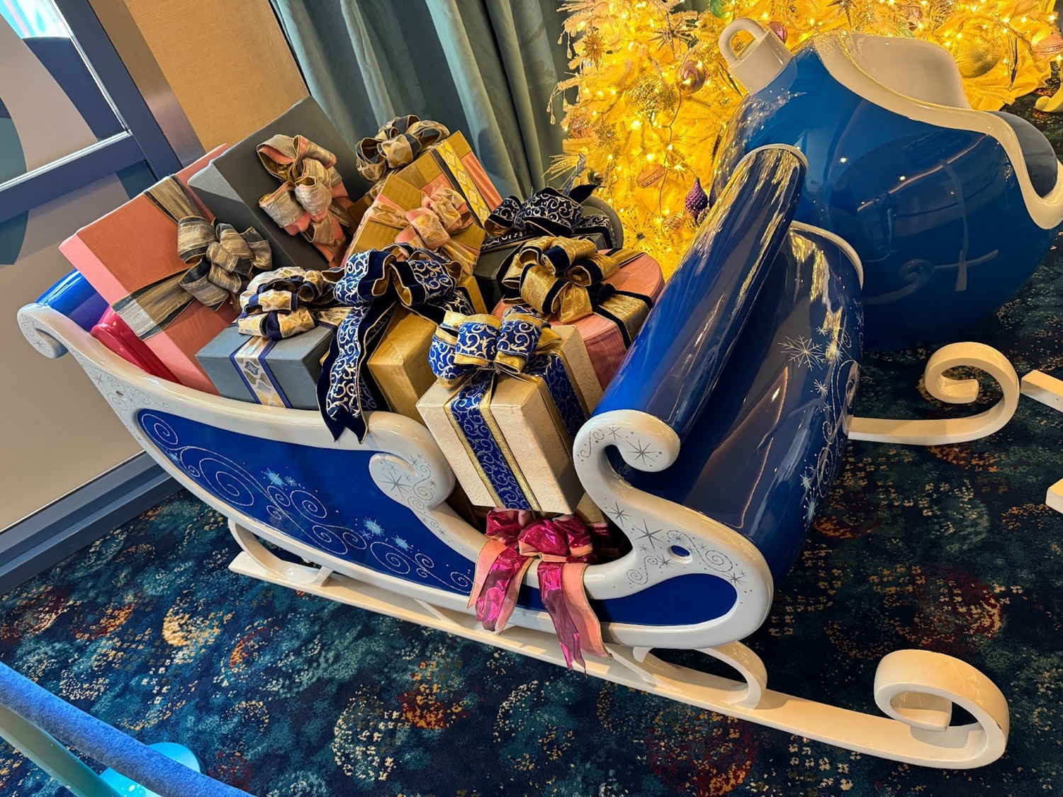 The holiday magic doesn’t stop when you leave the parks at the Disneyland Resort, with the Disneyland Hotel offering a wonderful package of festive decor that ties in perfectly to the hotel’s mid-century vibes.