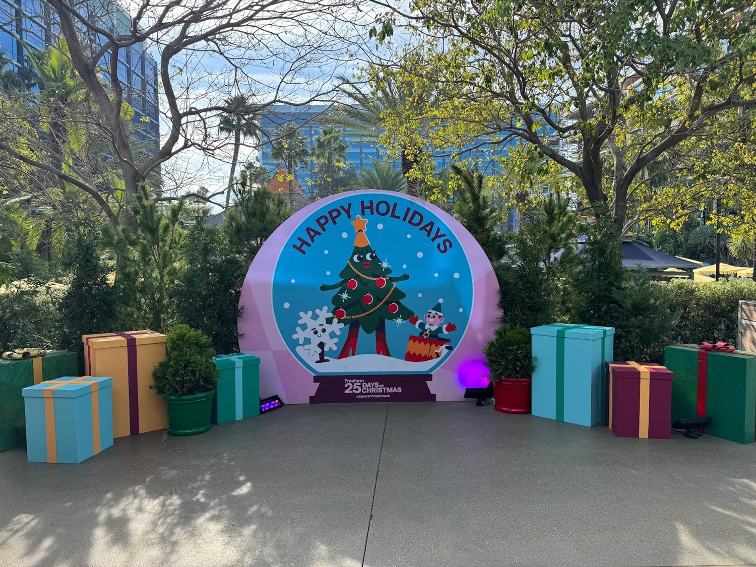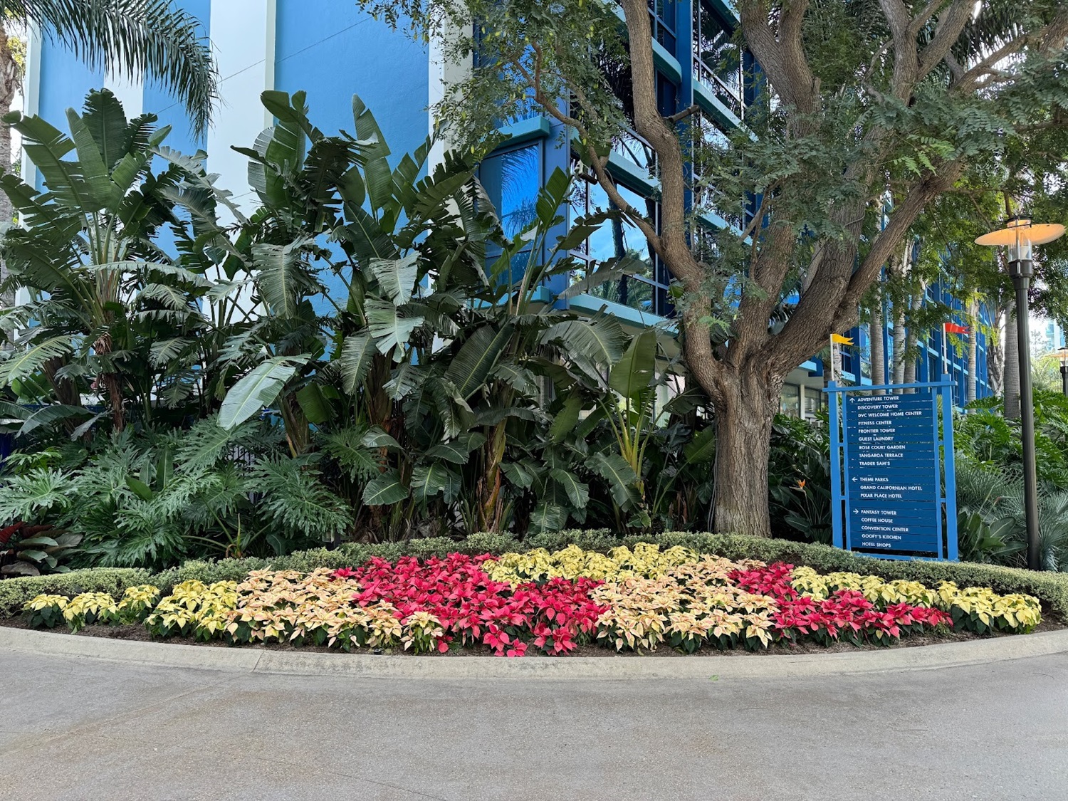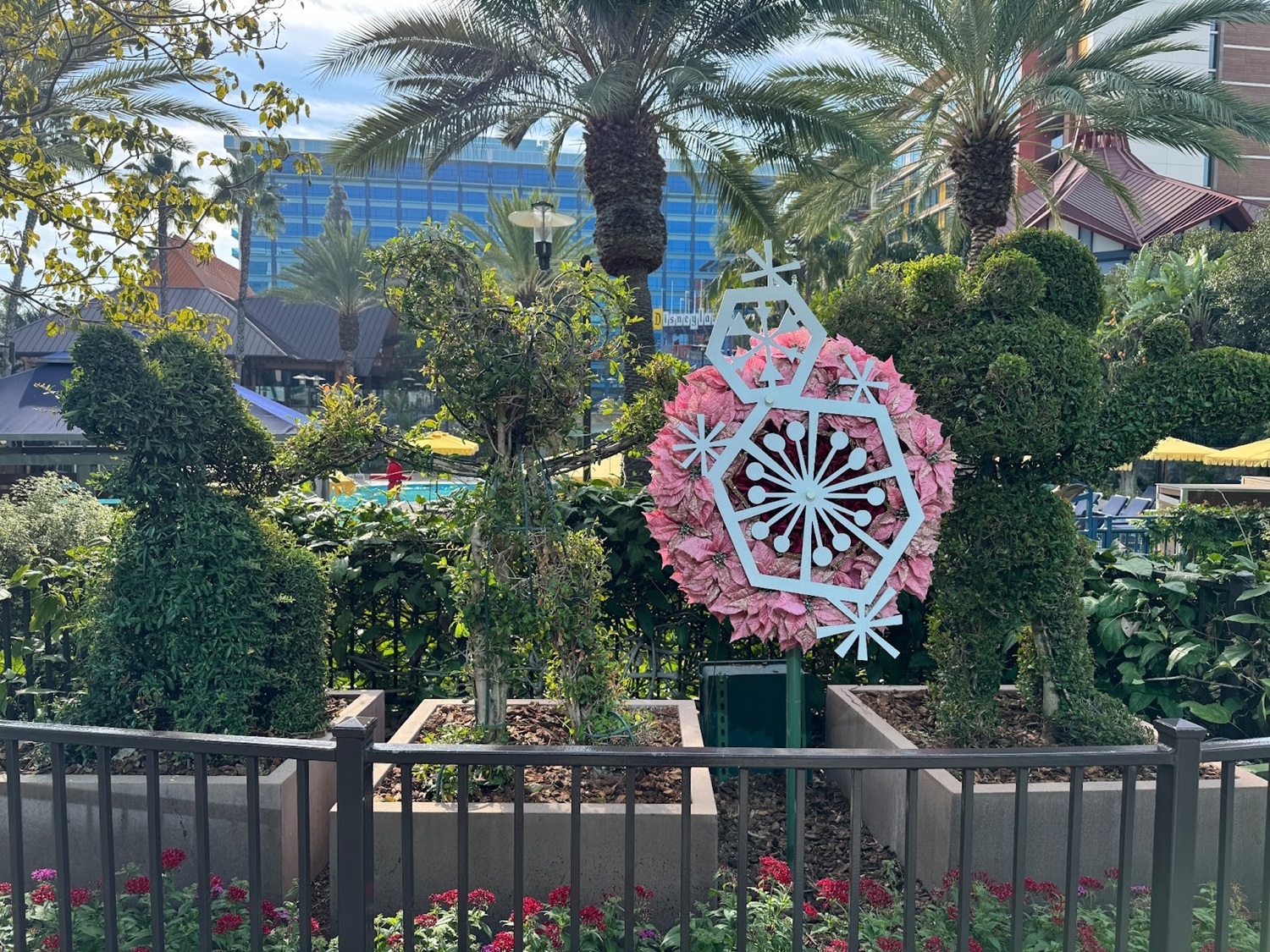 More holiday decor and foliage can be found in the outdoor areas of the hotel, including a promotion for Freeform’s 25 Days of Christmas.