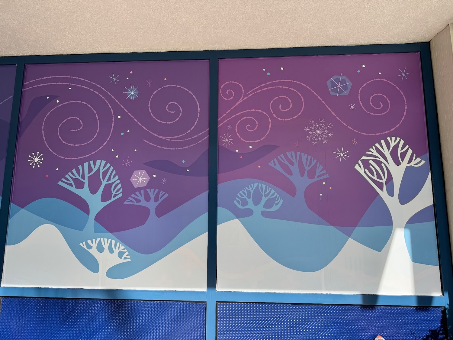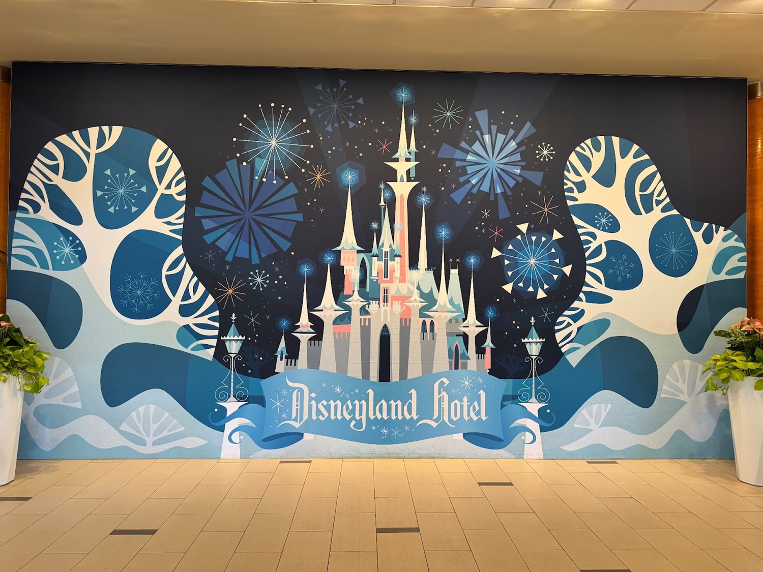 Guests entering the Disneyland Hotel’s front entrance are greeted by a festive carpet, with some beautiful artwork and decorations beckoning you inside. This artwork, designed by artist Hayden Evans, was introduced to the hotel last year.